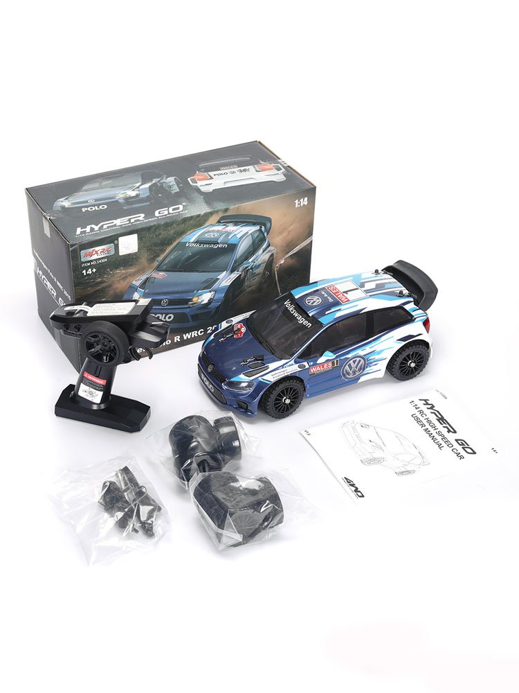 MJX HYPER GO 14304 1/14 2.4G Sport Drift RC Car бесколлекторный шорт-корс для дрифта и ралли. 2 комплекта сменных колес. Скорость 43 км/ч, бесколлекторный двигатель. Металлические детали шасси и подвески. Усиленный полный привод 4WD. Яркие светодиодные фары.