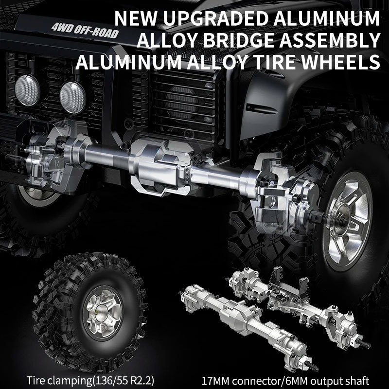 Высокая проходимость и прочность: Портальные мосты сами по себе увеличивают клиренс. Конструкция усилена: алюминиевая рама, металлические корпуса мостов (в версии H8H+), металлические тяги подвески и усиленный рулевой демпфер.