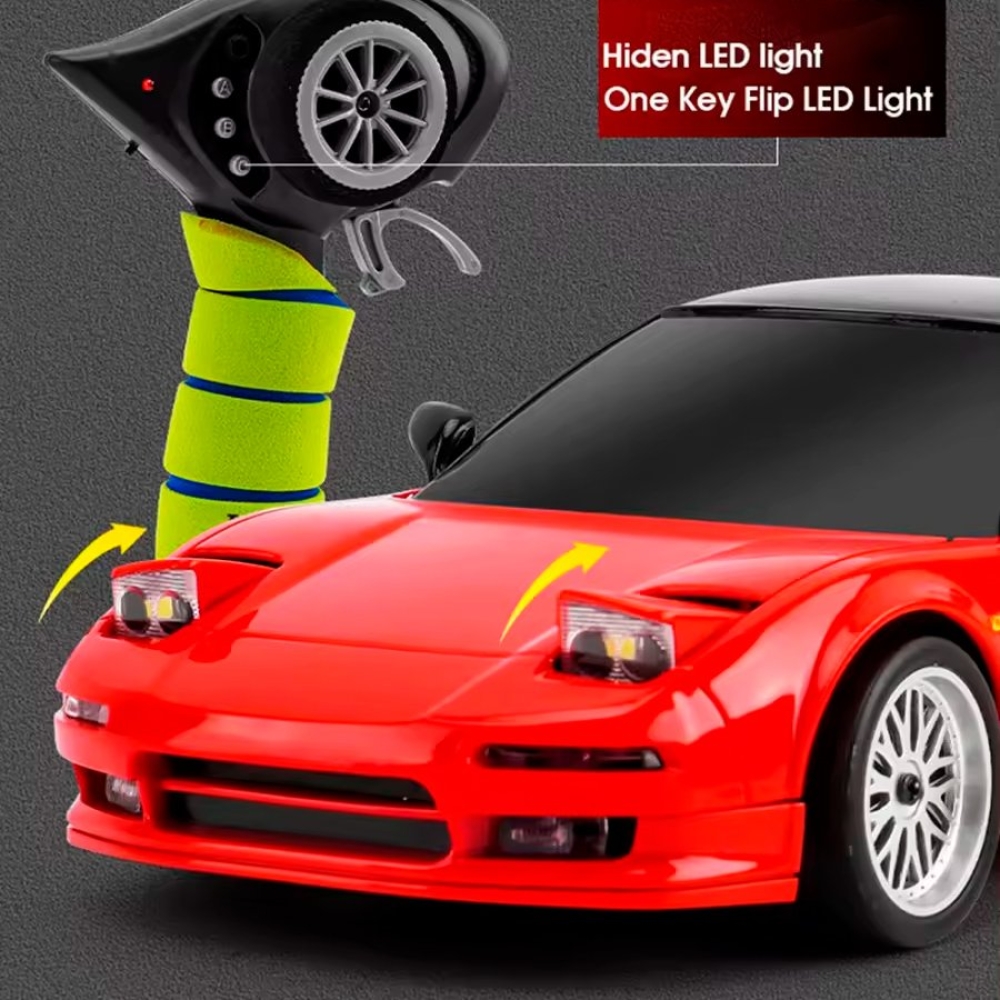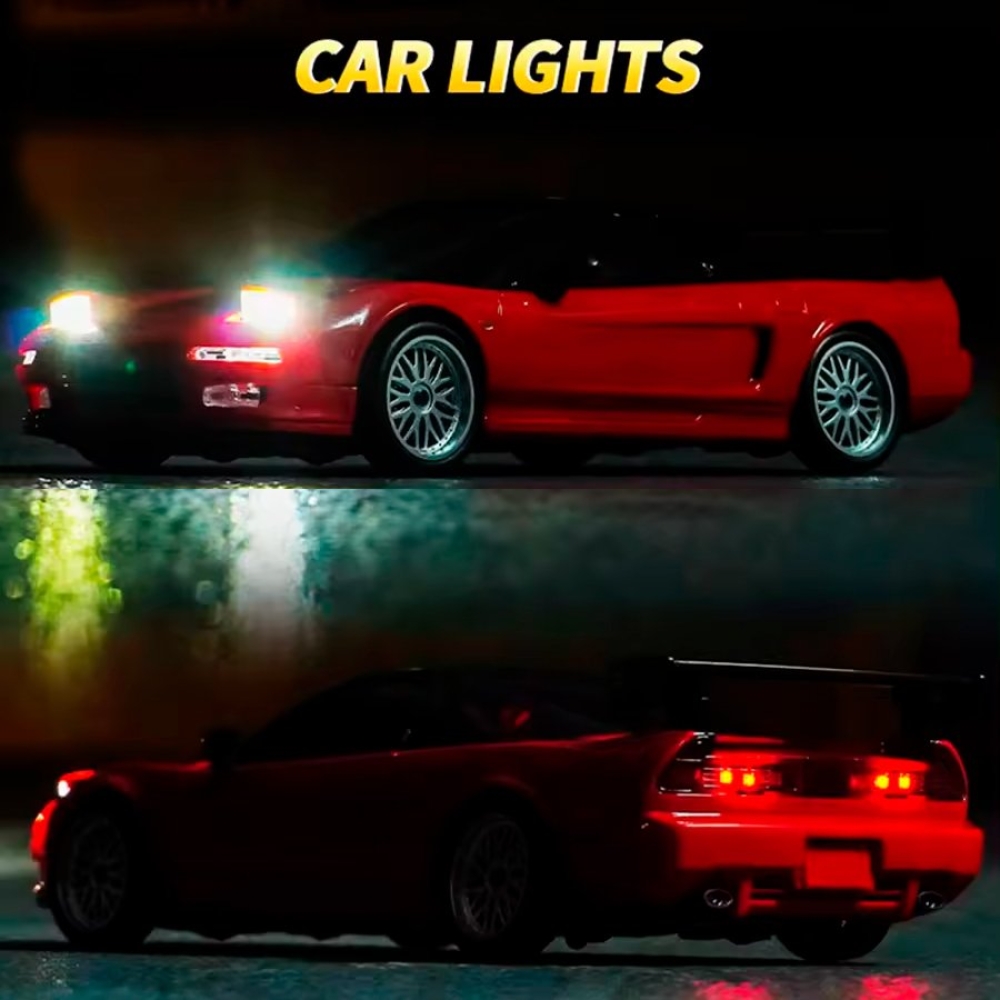 Оригинальная модель Honda NSX. Модель выполнена в масштабе 1:18, а внешний вид выполнен в соответствии с фактическими пропорциями. Применяется многорычажная конструкция подвески, которую можно регулировать, передние и задние колеса можно наклонять внутрь и наружу, выдвигающимися фарами (как у настоящего авто) можно управлять с помощью пульта дистанционного управления. Машинка имеет полностью пропорциональное управление как ускорения, так и поворота колес. Плата аккумуляторной батареи имеет защиту от перезаряда и переразряда, защиту от низкого напряжения. Оснащен литиевой батареей 7,4 В, 500 мА, USB-кабелем для зарядки, двигателем 180 класса. Встроенный гироскоп позволяет машине удерживать заданную траекторию, помогая вам получать максимум азарта от динамичных заездов!
