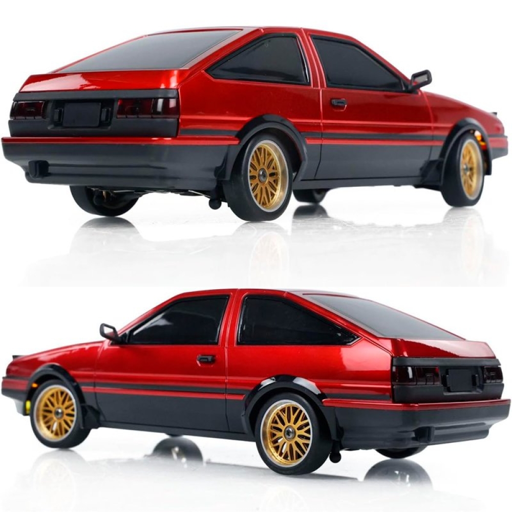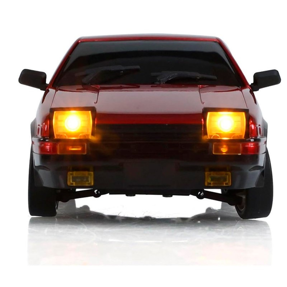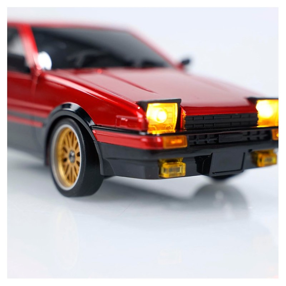 Оригинальная модель AE86 — это Corolla запущенная в производство в 1983 году. Модель выполнена в масштабе 1:18, а внешний вид выполнен в соответствии с фактическими пропорциями. Применяется многорычажная конструкция подвески, которую можно регулировать, передние и задние колеса можно наклонять внутрь и наружу, выдвигающимися фарами (как у настоящего авто) можно управлять с помощью пульта дистанционного управления. Машинка имеет полностью пропорциональное управление как ускорения, так и поворота колес. Плата аккумуляторной батареи имеет защиту от перезаряда и переразряда, защиту от низкого напряжения. Оснащен литиевой батареей 7,4 В, 500 мА, USB-кабелем для зарядки, двигателем 180 класса. Встроенный гироскоп позволяет машине удерживать заданную траекторию, помогая вам получать максимум азарта от динамичных заездов!