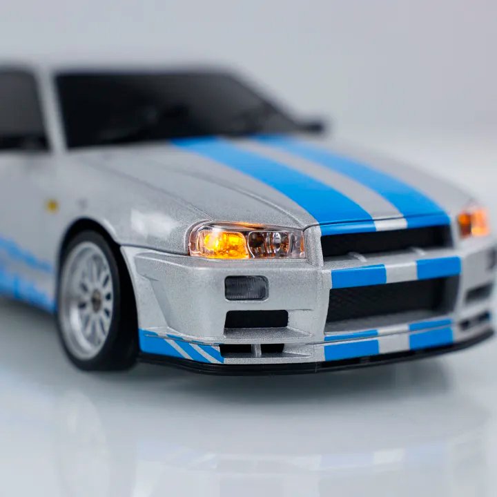 Оригинальная модель Skyline R34 GT-R. Модель выполнена в масштабе 1:18, а внешний вид выполнен в соответствии с фактическими пропорциями. Применяется многорычажная конструкция подвески, которую можно регулировать, передние и задние колеса можно наклонять внутрь и наружу. Машинка имеет полностью пропорциональное управление как ускорения, так и поворота колес. Плата аккумуляторной батареи имеет защиту от перезаряда и переразряда, защиту от низкого напряжения. Оснащен литиевой батареей 7,4 В, 500 мА, USB-кабелем для зарядки, двигателем 180 класса. Встроенный гироскоп позволяет машине удерживать заданную траекторию, помогая вам получать максимум азарта от динамичных заездов!