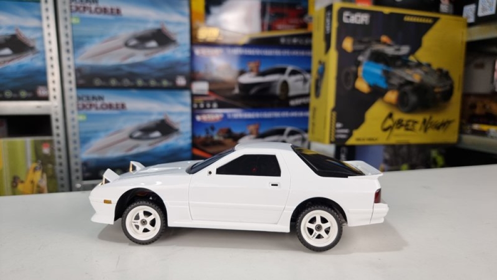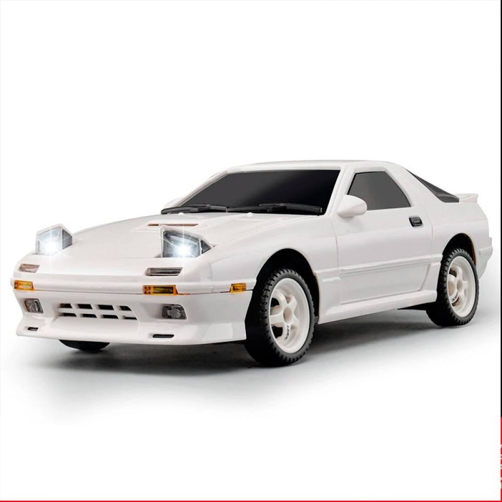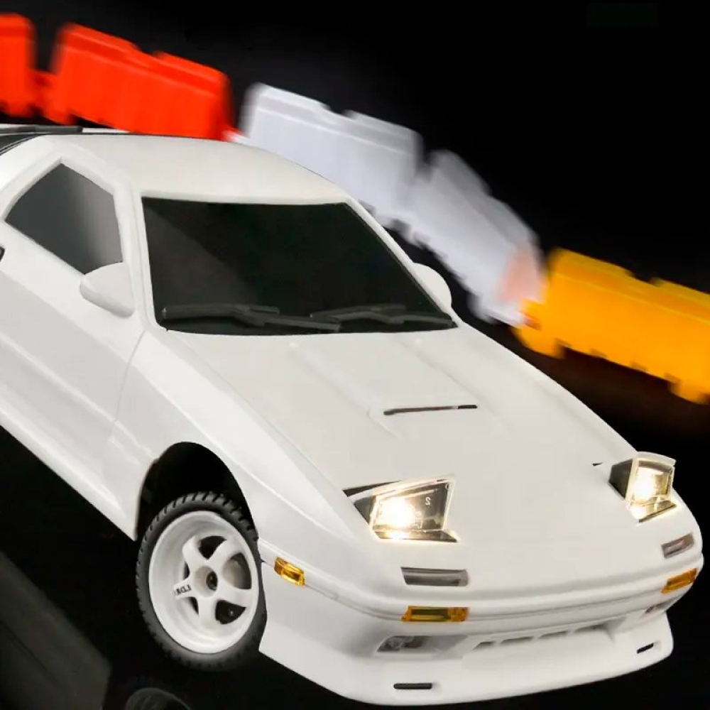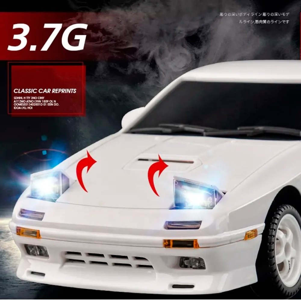 Оригинальная модель RX-7. Модель выполнена в масштабе 1:18, а внешний вид выполнен в соответствии с фактическими пропорциями. Применяется многорычажная конструкция подвески, которую можно регулировать, передние и задние колеса можно наклонять внутрь и наружу, выдвигающимися фарами (как у настоящего авто) можно управлять с помощью пульта дистанционного управления. Машинка имеет полностью пропорциональное управление как ускорения, так и поворота колес. Плата аккумуляторной батареи имеет защиту от перезаряда и переразряда, защиту от низкого напряжения. Оснащен литиевой батареей 7,4 В, 500 мА, USB-кабелем для зарядки, двигателем 180 класса. Встроенный гироскоп позволяет машине удерживать заданную траекторию, помогая вам получать максимум азарта от динамичных заездов!