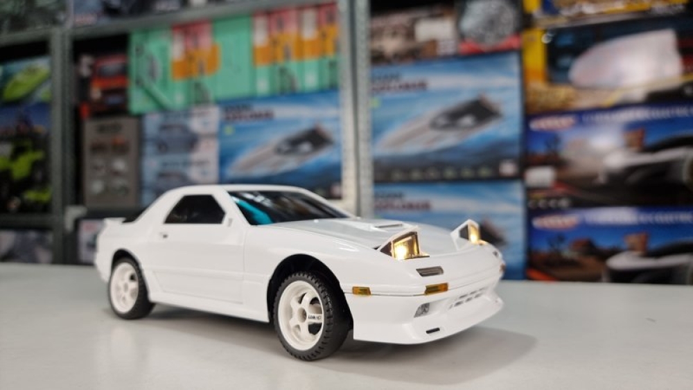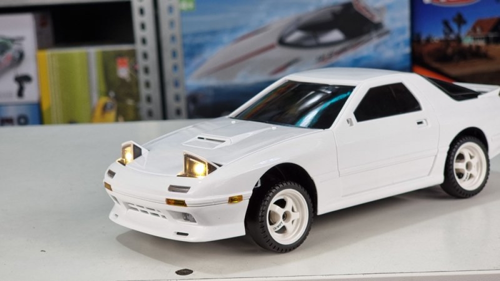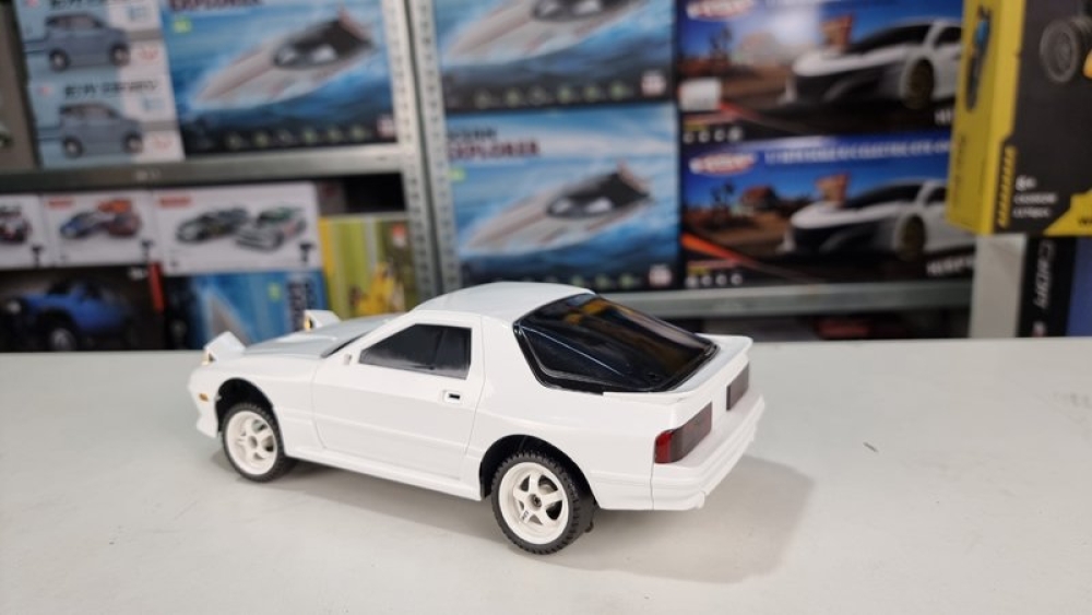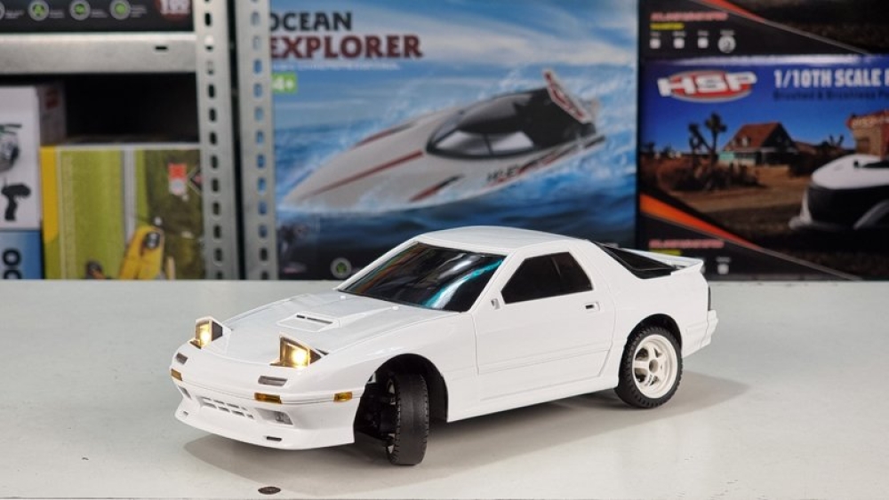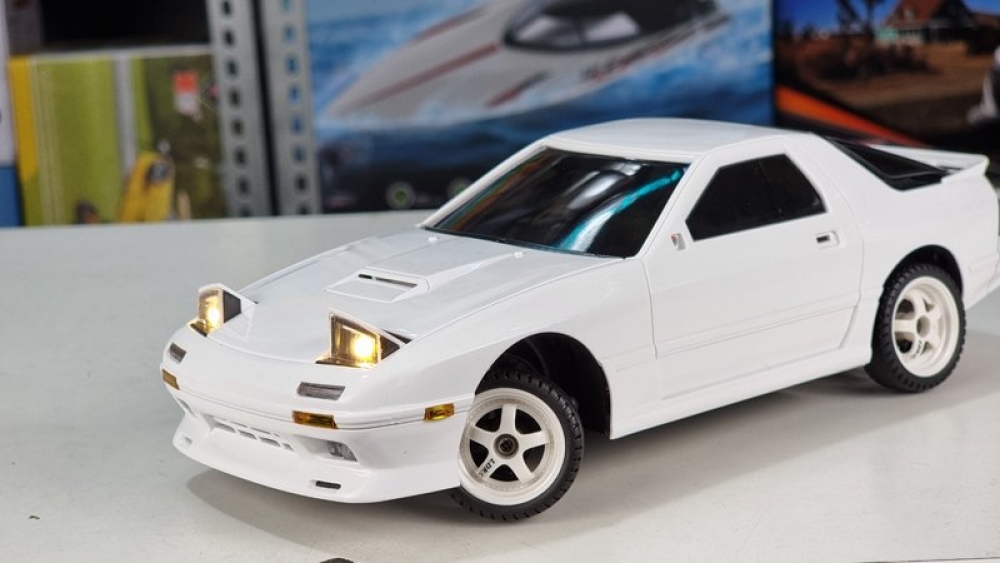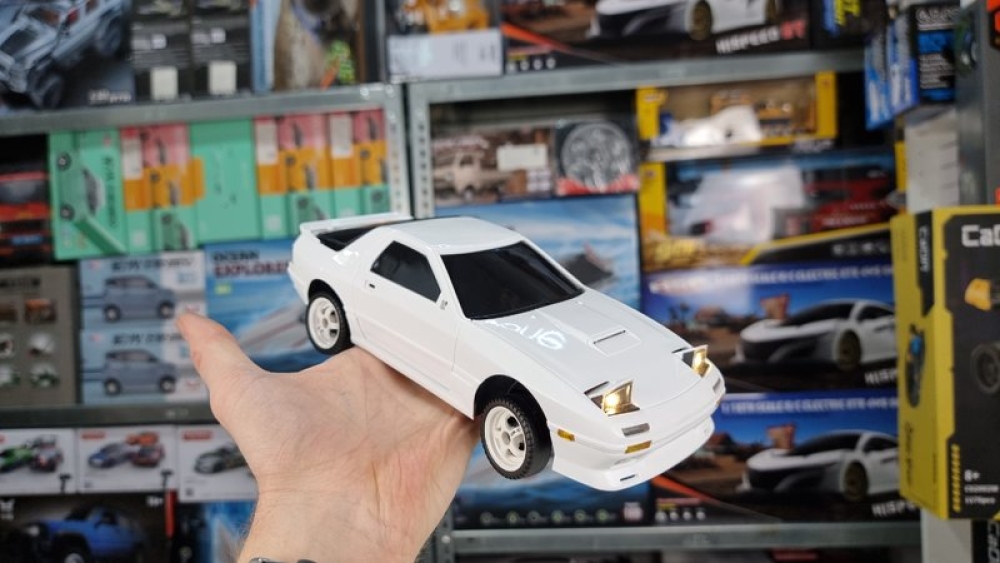 Оригинальная модель RX-7. Модель выполнена в масштабе 1:18, а внешний вид выполнен в соответствии с фактическими пропорциями. Применяется многорычажная конструкция подвески, которую можно регулировать, передние и задние колеса можно наклонять внутрь и наружу, выдвигающимися фарами (как у настоящего авто) можно управлять с помощью пульта дистанционного управления. Машинка имеет полностью пропорциональное управление как ускорения, так и поворота колес. Плата аккумуляторной батареи имеет защиту от перезаряда и переразряда, защиту от низкого напряжения. Оснащен литиевой батареей 7,4 В, 500 мА, USB-кабелем для зарядки, двигателем 180 класса. Встроенный гироскоп позволяет машине удерживать заданную траекторию, помогая вам получать максимум азарта от динамичных заездов!