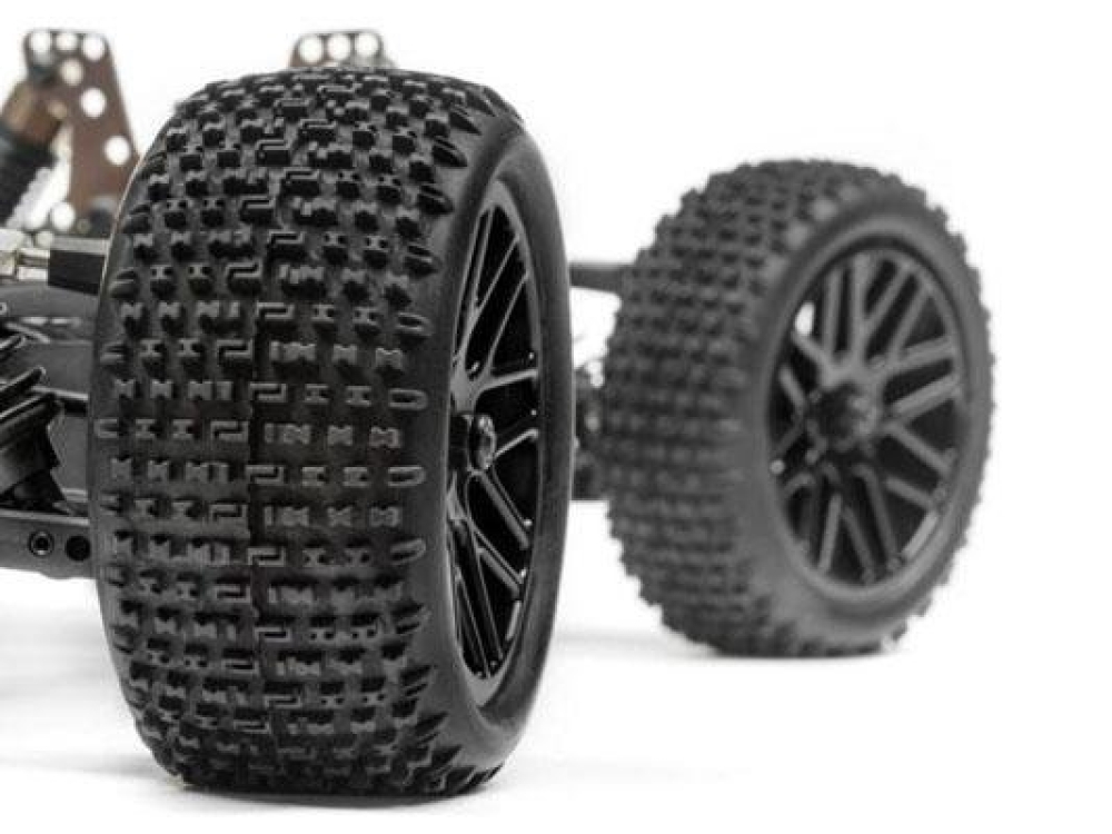 Strada XB Brushless - это полнофункциональный багги с мощными передним и задним бамперами, обеспечивающими надежную защиту в случае аварии, а также восемь маслонаполненных амортизаторов для дополнительного контроля. На стильных многоспицевых черных колесах установлены очень широкие внедорожные шины с агрессивным протектором, которые идеально подходят для самых разных дорожных и внедорожных условий.