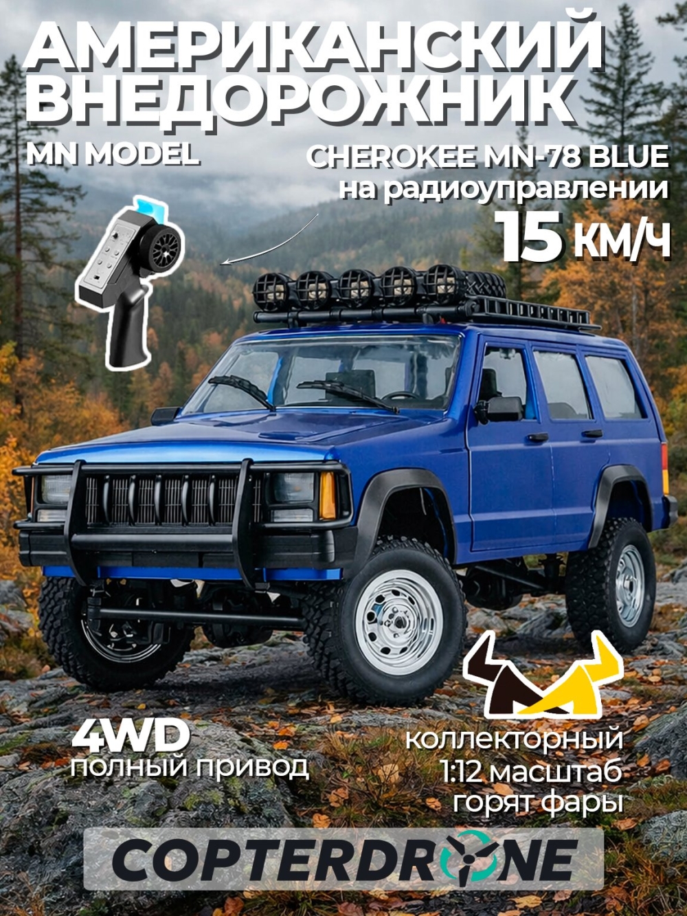 Радиоуправляемая машина джип MN MODEL CHEROKEE (синий) RTR 4WD масштаб 1:12 2.4G - MN-78|BLUE