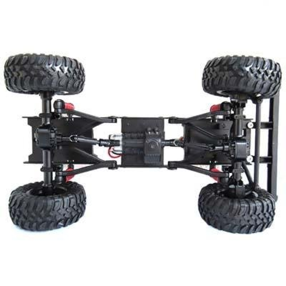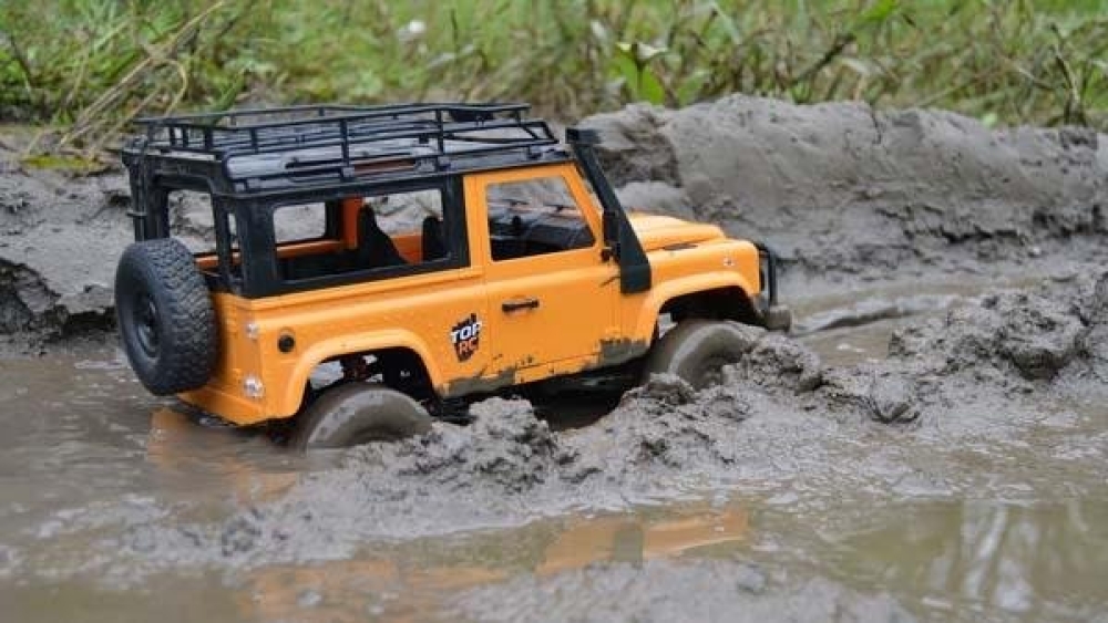 Кузов модели пикап с запасным колесом - в точности повторяет оригинальный британский внедорожник Defender D90 для заездов по суровому бездорожью - радиаторная решетка и колесные раки, воздухозаборник, выведенный наружу и накрышный багажник, а также фары и даже щетки дворников. Предназначается для трофи заездов по полному бездорожью или для сафари. Получил популярность за счет своей высокой надежности и долговечности, а также отличной проходимости. Фары джипа светятся, поэтому можно кататься в ночное время. В кабине с высокой детализацией также выполнен салон с сиденьями и приборной панелью. Модель построена на популярном шасси, на котором выпускаются хорошо знакомые грузовики Урал и Газ 66. Это стальное рамное шасси. Подвеска имеет передний и задний мост в которых расположены редукторы, на каждое колесо идет пружинный амортизатор. Полный привод осуществляется за счет карданной системы и 2-х редукторов. Увеличенный клиренс поможет преодолеть большие валуны, бревна или грязевой затор. Машинку можно использовать как дома, так и на улице в сухую погоду. Модель полностью ремонтопригодна, можно легко заменить любую деталь подвески, а также сервопривод или мотор.