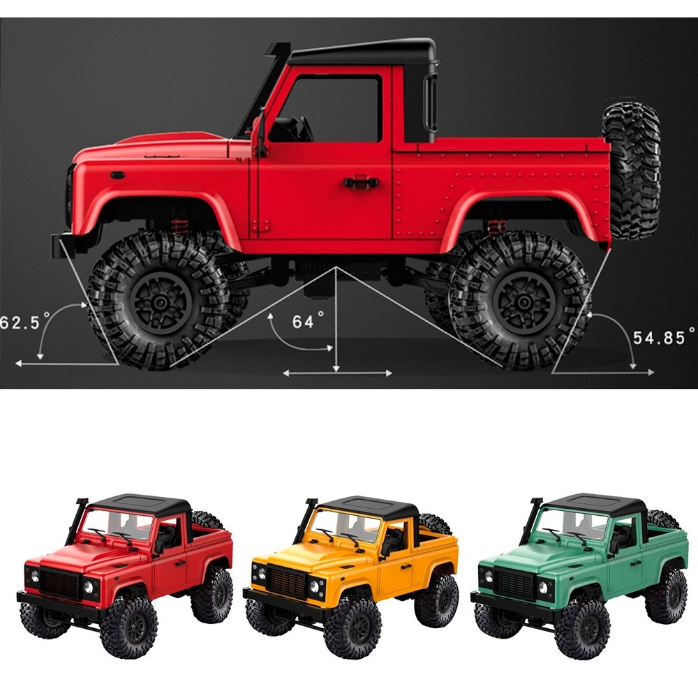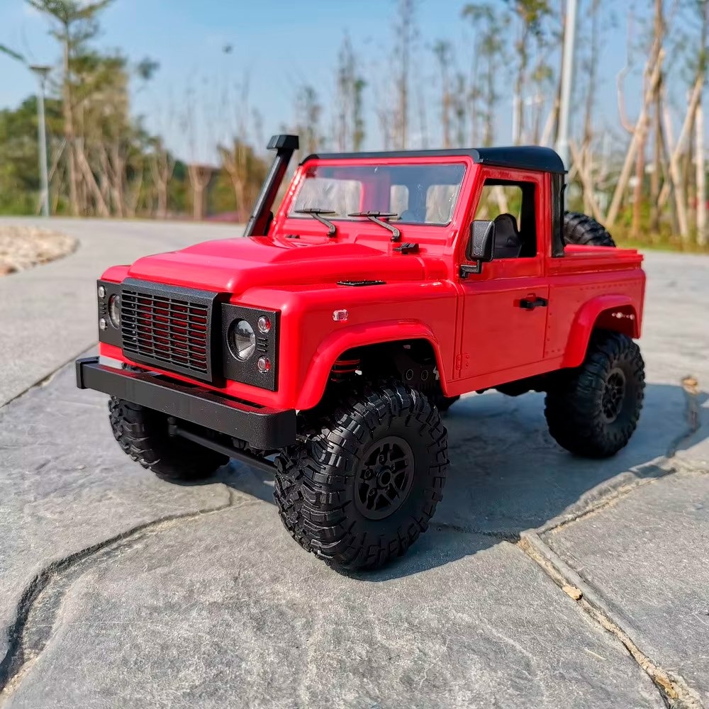 Кузов модели пикап с запасным колесом - в точности повторяет оригинальный британский внедорожник Defender D90 для заездов по суровому бездорожью - радиаторная решетка и колесные раки, воздухозаборник, выведенный наружу и накрышный багажник, а также фары и даже щетки дворников. Предназначается для трофи заездов по полному бездорожью или для сафари. Получил популярность за счет своей высокой надежности и долговечности, а также отличной проходимости. Фары джипа светятся, поэтому можно кататься в ночное время. В кабине с высокой детализацией также выполнен салон с сиденьями и приборной панелью. Модель построена на популярном шасси, на котором выпускаются хорошо знакомые грузовики Урал и Газ 66. Это стальное рамное шасси. Подвеска имеет передний и задний мост в которых расположены редукторы, на каждое колесо идет пружинный амортизатор. Полный привод осуществляется за счет карданной системы и 2-х редукторов. Увеличенный клиренс поможет преодолеть большие валуны, бревна или грязевой затор. Машинку можно использовать как дома, так и на улице в сухую погоду. Модель полностью ремонтопригодна, можно легко заменить любую деталь подвески, а также сервопривод или мотор.