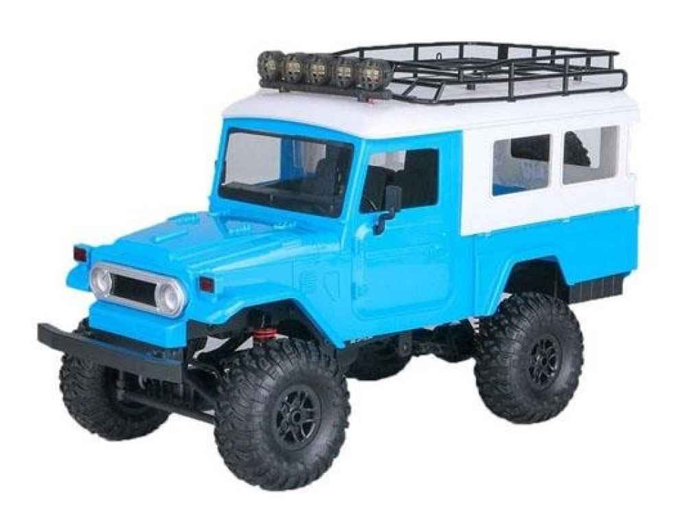 Кузов модели в точности повторяет оригинальный японский внедорожник Toyota FJ45 в синем цвете. Копия оригинальной серии Land Cruisers, которые выпускались с 1690 по 2001 годы. Подойдет для заездов по суровому бездорожью. Соблюдены такие детали как радиаторная решетка и колесные раки, воздухозаборник и накрышный багажник с лайтбаром, а также фары, бамперы и боковые зеркала. Фары светятся, поэтому можно кататься в ночное время. В кабине с высокой детализацией также выполнен салон с сиденьями и приборной панелью. Изначально пикап - дополнен жестким задним кузовом для безопасной перевозки людей и различных грузов. Модель построена на популярном шасси, на котором выпускаются хорошо знакомые грузовики Урал и Газ 66. Это стальное рамное шасси. Подвеска имеет передний и задний мост в которых расположены редукторы, на каждое колесо идет пружинный амортизатор. Полный привод осуществляется за счет карданной системы. Увеличенный клиренс поможет преодолеть большие валуны, бревна или грязевой затор. Машинку можно использовать как дома, так и на улице в сухую погоду. Модель полностью ремонтопригодна, можно легко заменить любую деталь подвески, а также сервопривод или мотор.