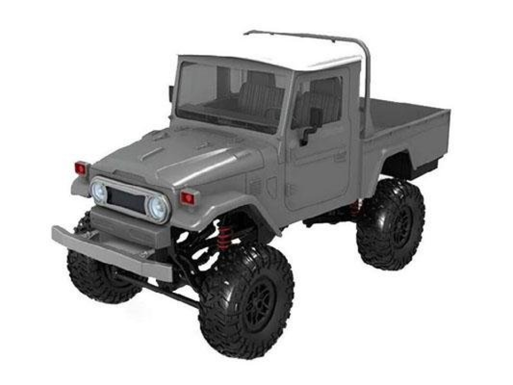 Кузов модели в точности повторяет оригинальный японский внедорожник пикап Toyota FJ45 в сером цвете. Копия оригинальной серии Land Cruisers, которые выпускались с 1690 по 2001 годы. Подойдет для заездов по суровому бездорожью. Способна преодолевать уклоны в 45 градусов. Соблюдены такие детали как радиаторная решетка и колесные раки, воздухозаборник и накрышный багажник, а также фары, бамперы и боковые зеркала. Фары светятся, поэтому можно кататься в ночное время. В кабине с высокой детализацией также выполнен салон с сиденьями и приборной панелью. Модель построена на популярном шасси, на котором выпускаются хорошо знакомые грузовики Урал и Газ 66. Это стальное рамное шасси. Подвеска имеет передний и задний мост в которых расположены редукторы, на каждое колесо идет пружинный амортизатор. Полный привод осуществляется за счет карданной системы. Увеличенный клиренс поможет преодолеть большие валуны, бревна или грязевой затор. Машинку можно использовать как дома, так и на улице в сухую погоду. Модель полностью ремонтопригодна, можно легко заменить любую деталь подвески, а также сервопривод или мотор.