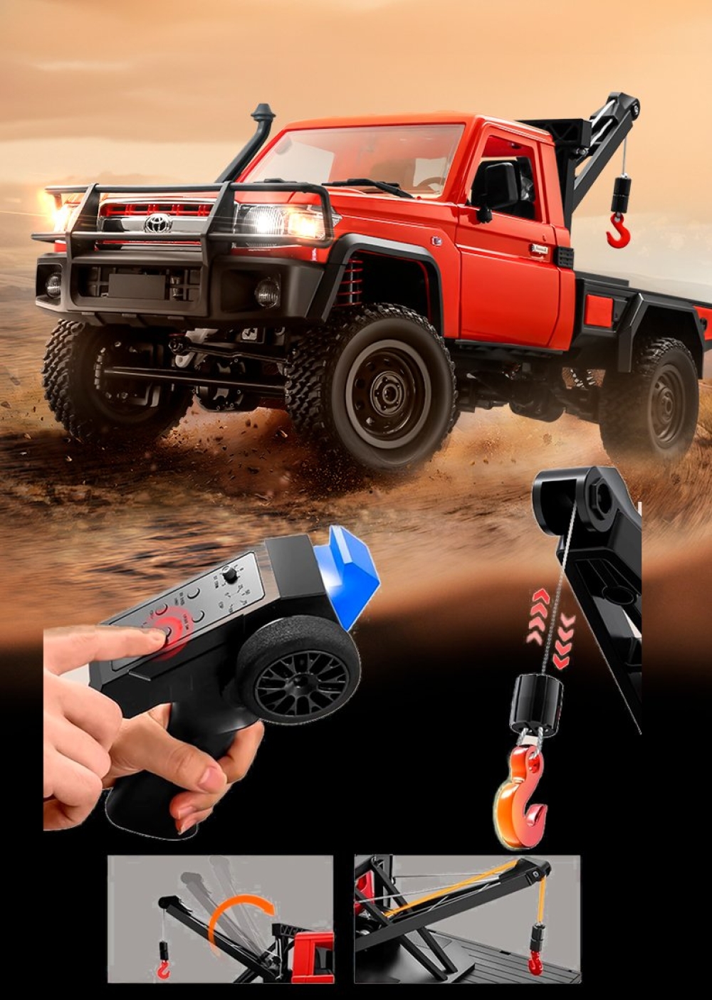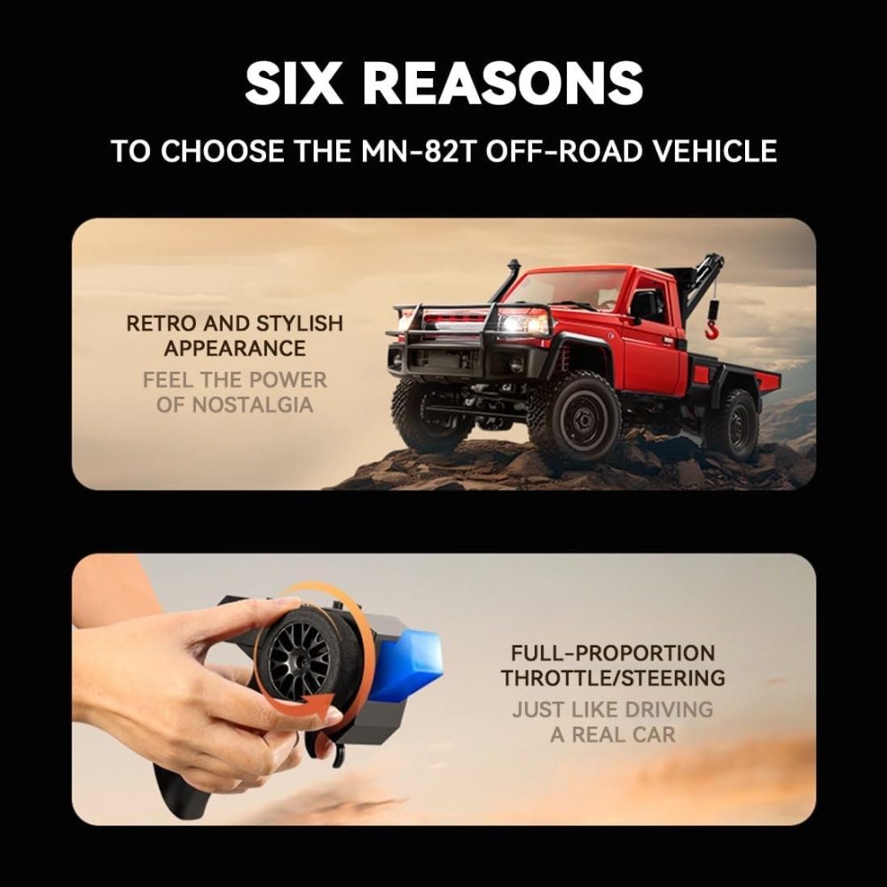Радиоуправляемая машина MN MODEL, внедорожник с лебедкой Land Cruiser 1:12, 2,4 ГГц, RTR, 4WD - MN-82T-RED