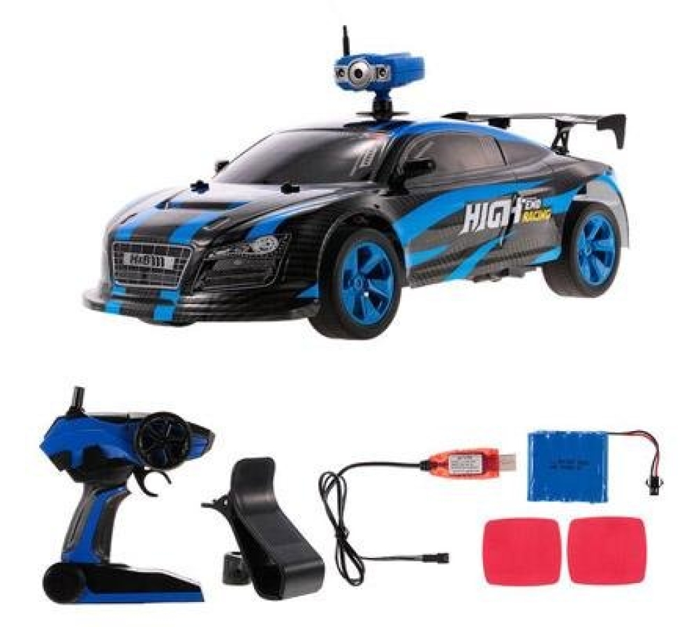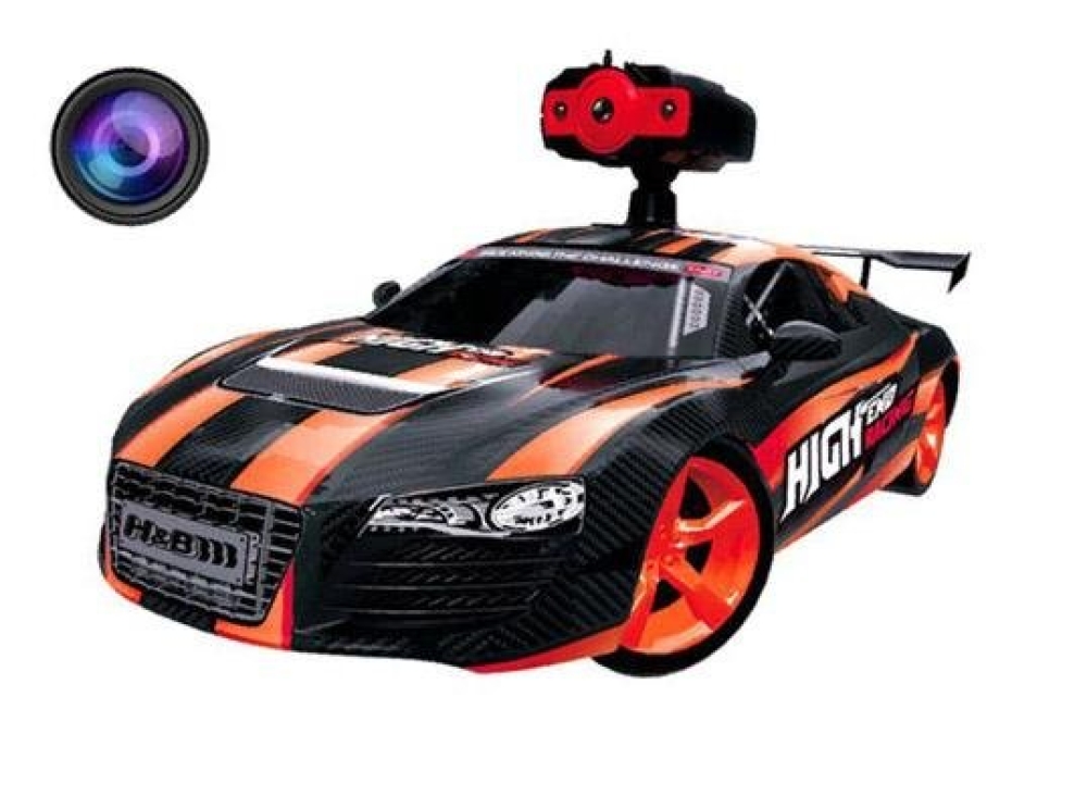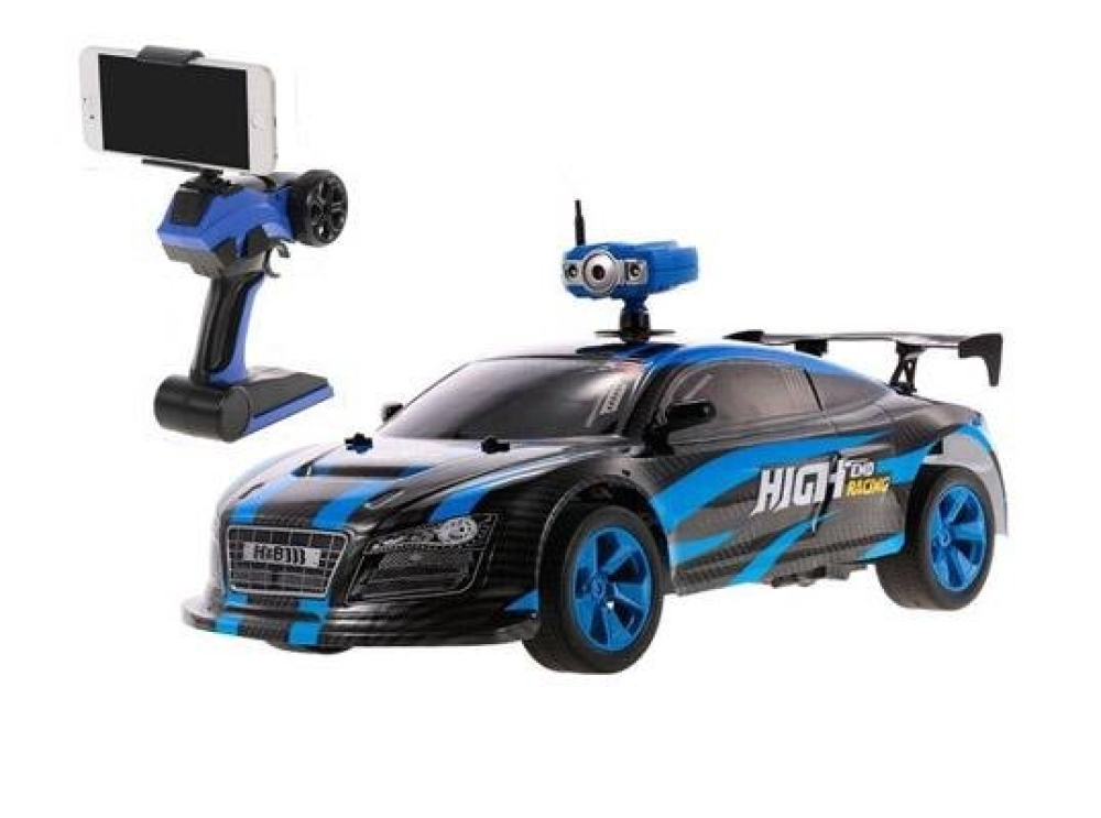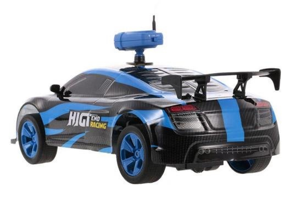 Гоночная машинка для дрифта большого размера с приводом на задние колеса, имеет отличную управляемость. Модель отлично подойдет начинающим гонщикам. Машинка имеет резиновые покрышки и может ездить по всем типам дорожных поверхностей. На машинке легко начать дрифтить даже новичку. Пропорциональное управление позволит плавно разгоняться и аккуратно объезжать препятствия. Главной особенностью игрушки является наличие на крыше камеры с видео трансляцией. FPV камера имеет разрешение 0.3 mpx и поэтому без задержки передает видео на экран смартфона. Почувствуйте себя шпионом будущего!