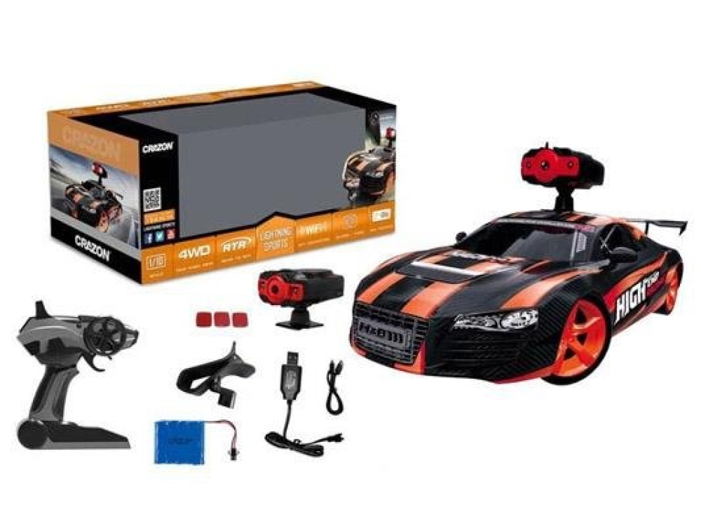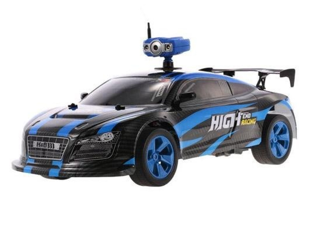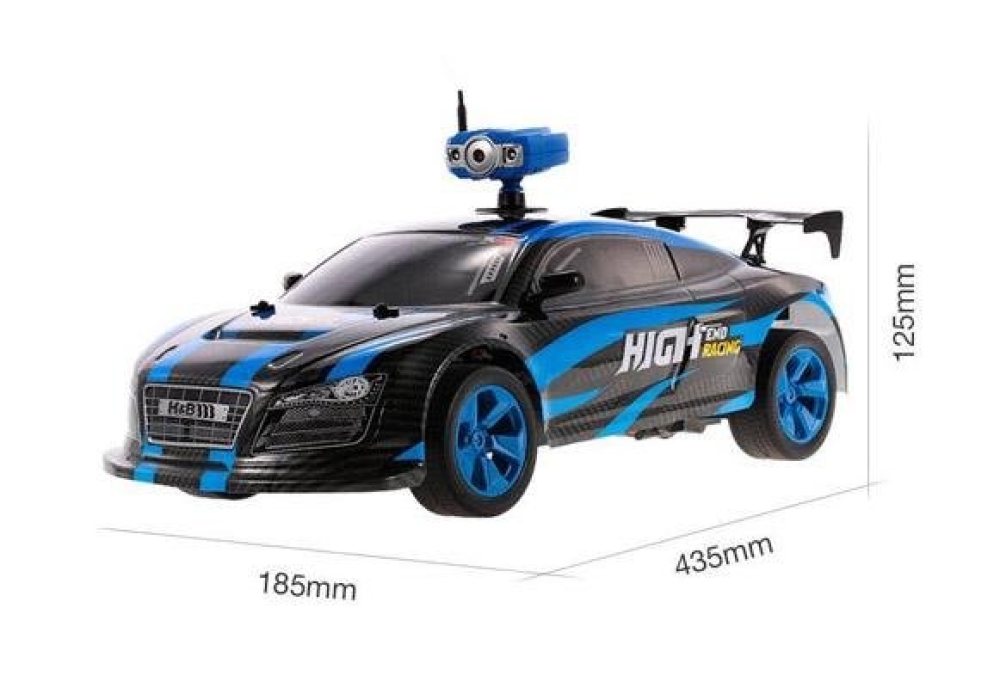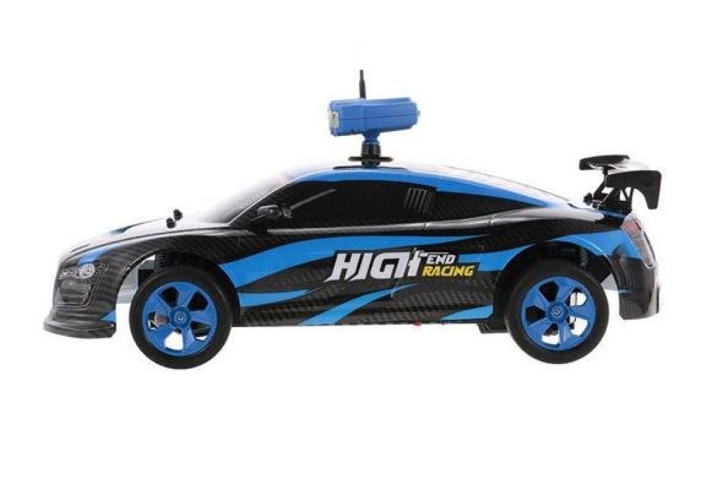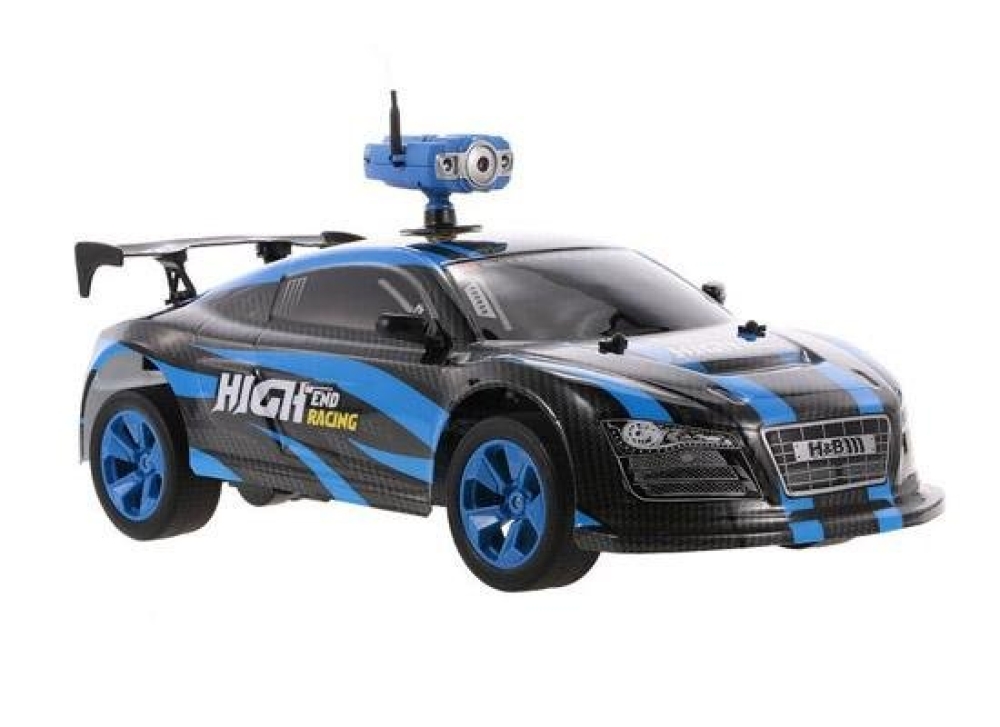 Гоночная машинка для дрифта большого размера с приводом на задние колеса, имеет отличную управляемость. Модель отлично подойдет начинающим гонщикам. Машинка имеет резиновые покрышки и может ездить по всем типам дорожных поверхностей. На машинке легко начать дрифтить даже новичку. Пропорциональное управление позволит плавно разгоняться и аккуратно объезжать препятствия. Главной особенностью игрушки является наличие на крыше камеры с видео трансляцией. FPV камера имеет разрешение 0.3 mpx и поэтому без задержки передает видео на экран смартфона. Почувствуйте себя шпионом будущего!