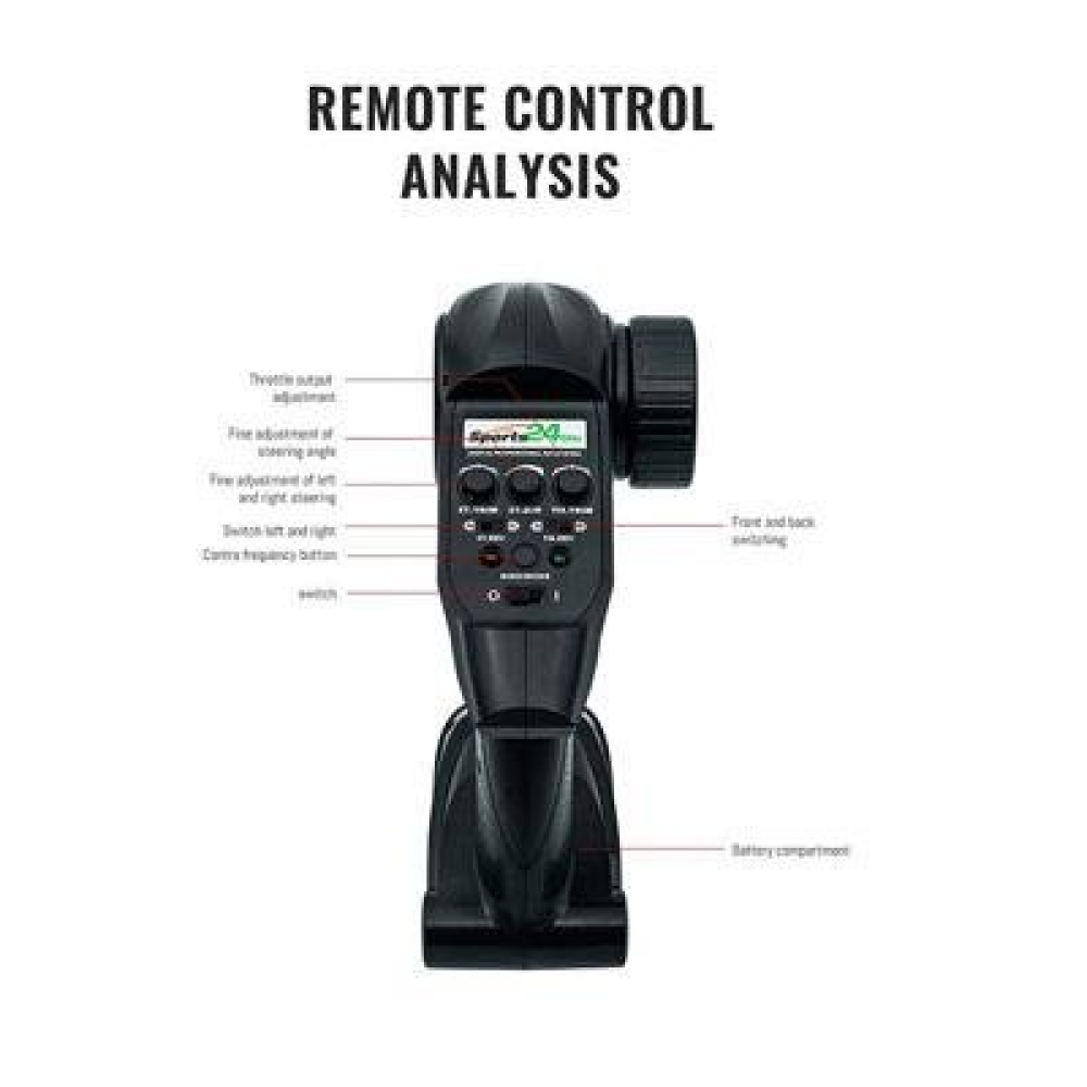 - пульт ДУ 2,4 ГГц с защитой от помех и пересечения частот, радиус действия - до 100 м