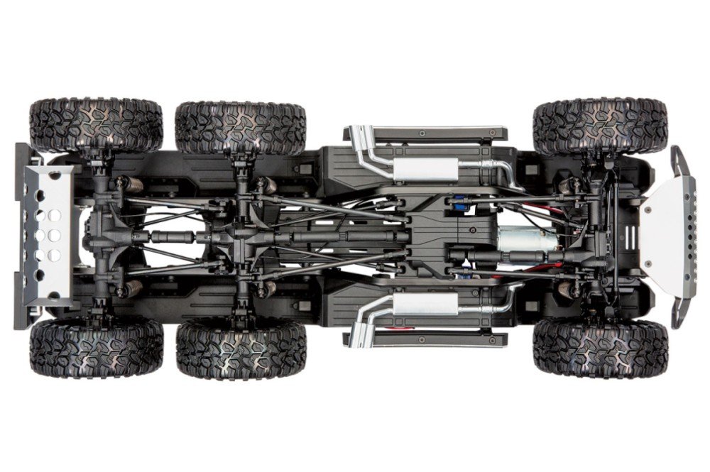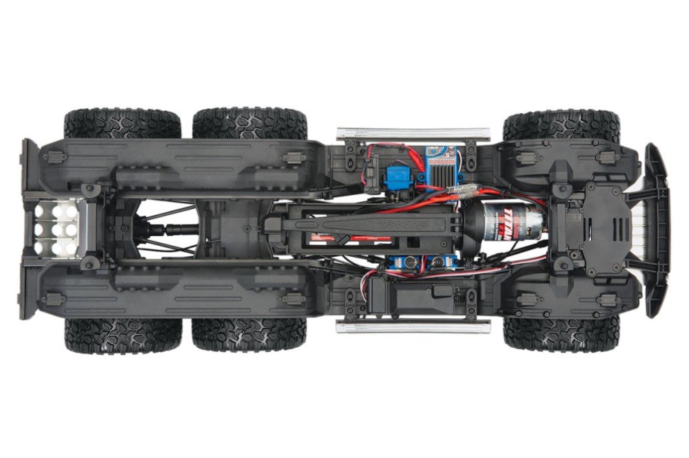 Новое доработанное шасси размещает дополнительный набор ведущих колес там, где они вам нужны больше всего! 6-колесный привод позволяет увеличить сцепление с дорогой для большей проходимости крутых препятствий и большего сцепления с рыхлыми и каменистыми поверхностями. Разработанные специально для TRX-6 Mercedes-Benz G 63 AMG 6x6, толстые 1,5 мм стальные каркасные направляющие сформованы из одного цельного куска метала для максимальной прочности. Дополнительные крепления и поперечины обеспечивают исключительную жесткость при нагрузках.