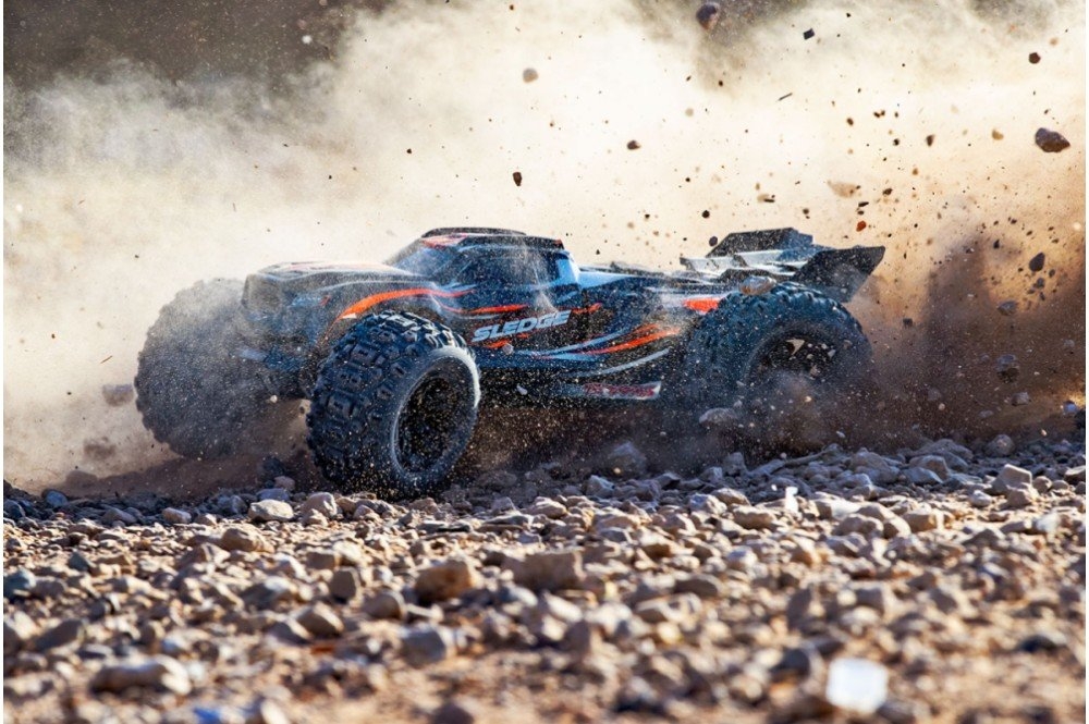 Traxxas Sledge оснащен высокопроизводительным сервоприводом с металлическим редуктором, который обеспечивает огромный крутящий момент внутри водонепроницаемого теплорассеивающего алюминиевого корпуса! Система питания VXL-6 отличается новой настройкой специально для двигателя 2000КВ. Вместе они обеспечивают значительно большую мощность и диапазон резкого ускорения, который вы можете увидеть и почувствовать. Шины Premium Sledgehammer входят в стандартную комплектацию, которые не требуют замены на более жесткие!