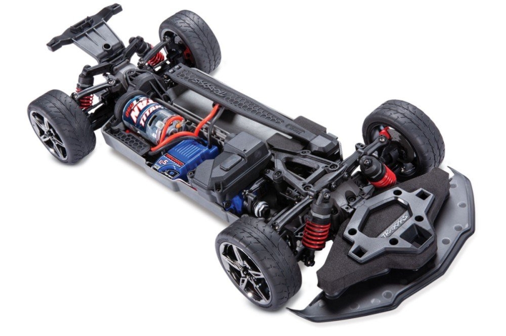 Кузов корвета крепится в шасси модели. Когда придет время заменить аккумулятор, просто надавите на защелки спереди и сзади, и весь кузов отойдет за считанные секунды. Шины Corvette большего размера 4-Tec 3.0 и точные копии колес с черным хромом обеспечивают повышенную устойчивость и улучшенную управляемость. Реплики тормозных дисков включают стандартные колесные шестигранники диаметром 12 мм и красные тормозные суппорты. 4-Tec 3.0 использует маслонаполненные амортизаторы Ultra Shocks, в которых используется технология X-ring для идеальной плавности хода. Подлежат любой настройке на ваш вкус. Включают в себя напорные баллоны для разделения воздуха и масла и пружинные зажимы для точного изменения дорожного просвета и предварительного натяга пружины. Крышки амортизаторов новой конструкции имеют полые шарики для лучшего шарнирного сочленения и большей прочности.