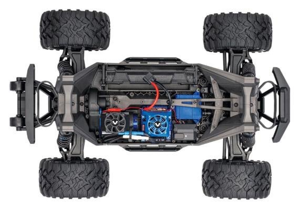 Новый монстр от компании Traxxas. Имеет абсолютно уникальное шасси, защищенное и невероятно продуманное. Имеет модульную конструкцию, благодаря которой обслуживание данного автомобиля становится гораздо проще. Сам пластик является самым прочным среди представленных моделей. Дифференциалы полностью металлические. На мотор и регулятор установлены собственные охлаждающие кулеры. Мощный б/к мотор 540XL способен разогнать этого монстра до 75 км/ч! Если вы ищете все с приставкой "лучшее", то тут вы сможете это найти. Самая надежная и прочная серво, надежный регулятор оборотов и детали подвески.