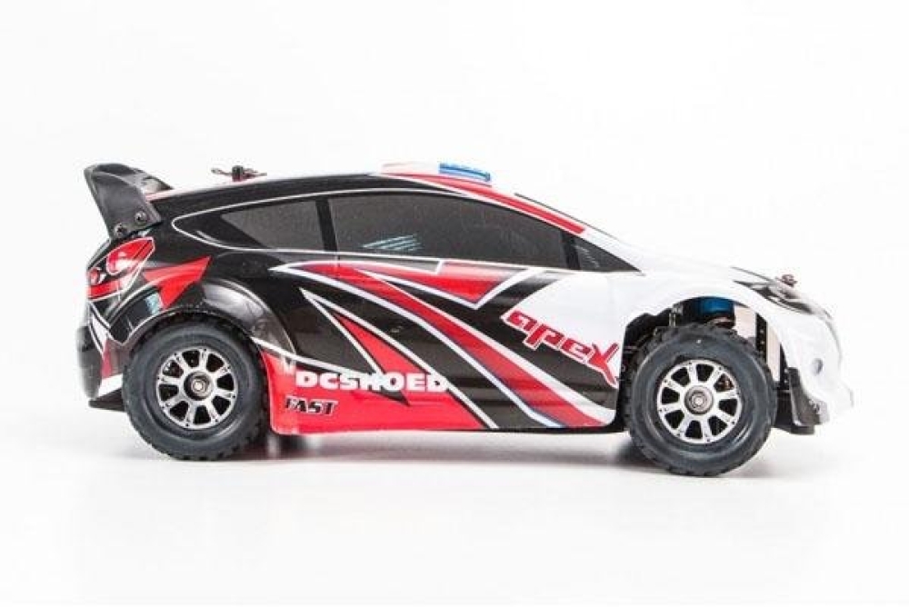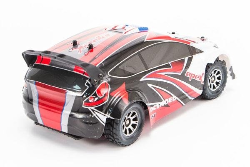 Не большой раллийный автомобиль для стремительных заездов по песчаным и асфальтовым трекам. Как и настоящие раллийные машины подвеска и колеса настроены для несколько типов поверхностей, т.е. являются универсальными. Колеса имеют мягкую резину с широким протектором. Предназначена для заездов на улице и имеет влагозащиту электроники. За плавность хода отвечает многорычажная подвеска с маслонаполненными амортизаторами.