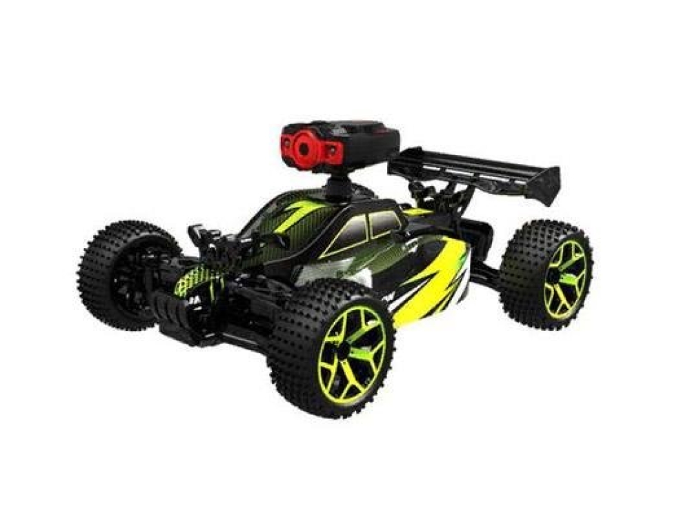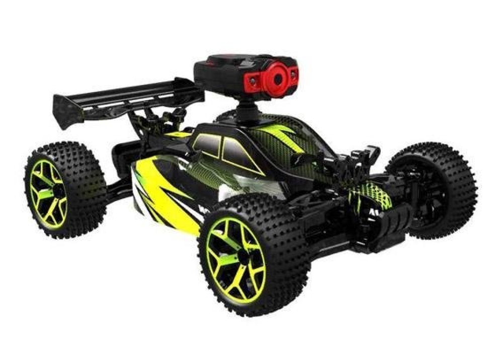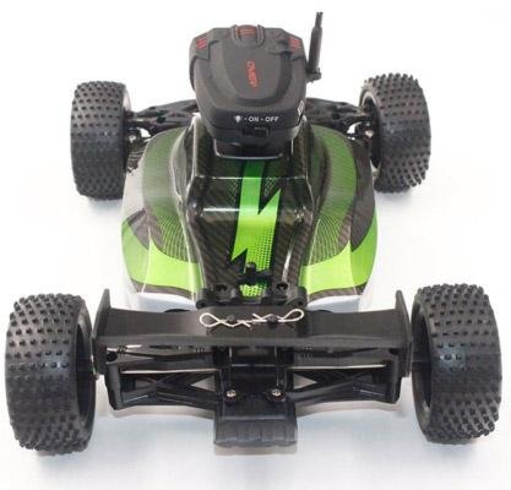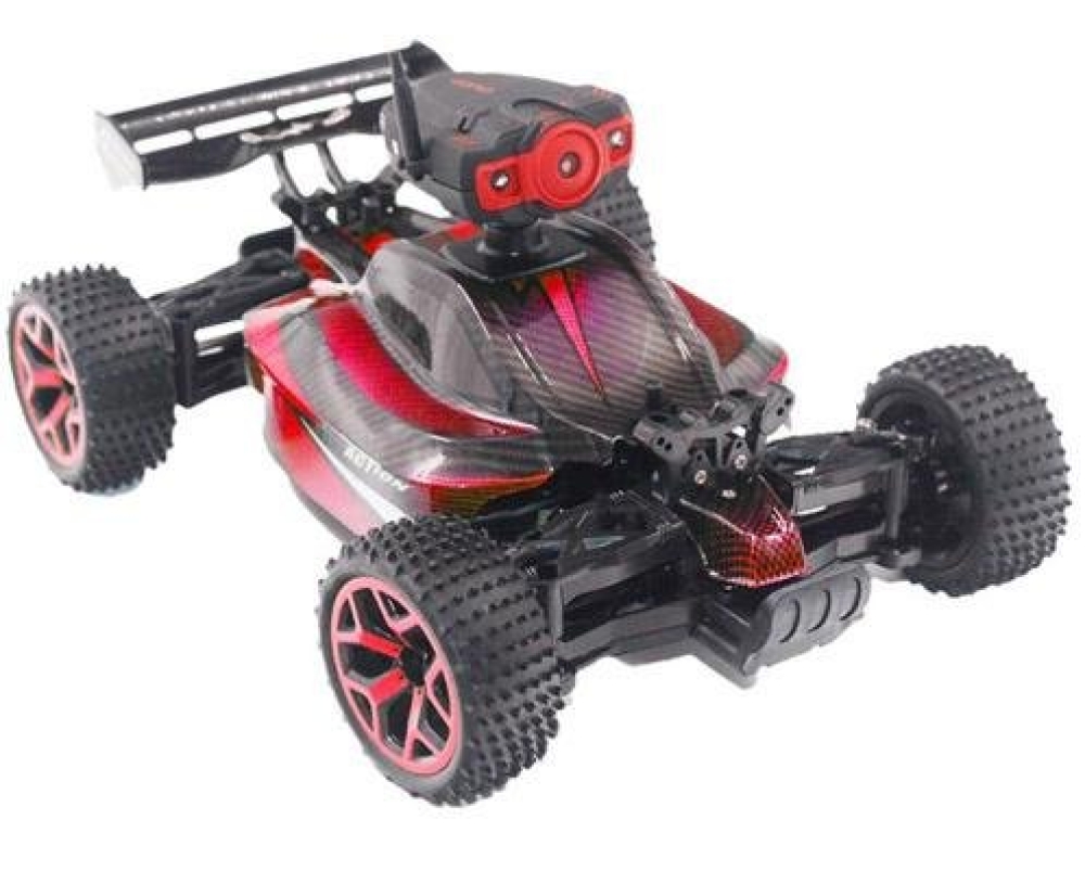 Гоночная багги для заездов по пересеченной местности среднего размера с приводом на задние колеса, имеет отличную управляемость и неплохую проходимость. Модель отлично подойдет начинающим гонщикам, построена на базе шасси закрытого типа, т.е. вся электроника и основные механические детали спрятаны под пластиковым корпусом, что дополнительно защищает их от внешнего воздействия. Машинка имеет резиновые покрышки с особым протектором и может ездить по всем типам дорожных поверхностей. Пропорциональное управление позволит плавно разгоняться и аккуратно объезжать препятствия. Главной особенностью игрушки является наличие на крыше камеры с видео трансляцией. FPV камера имеет разрешение 0.3 mpx и поэтому без задержки передает видео на экран смартфона. Почувствуйте себя шпионом будущего! Машинка имеет 6 цветовых схем кузова.
