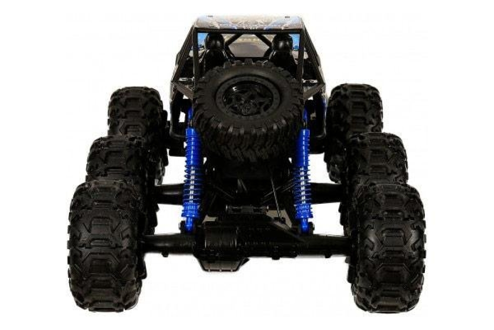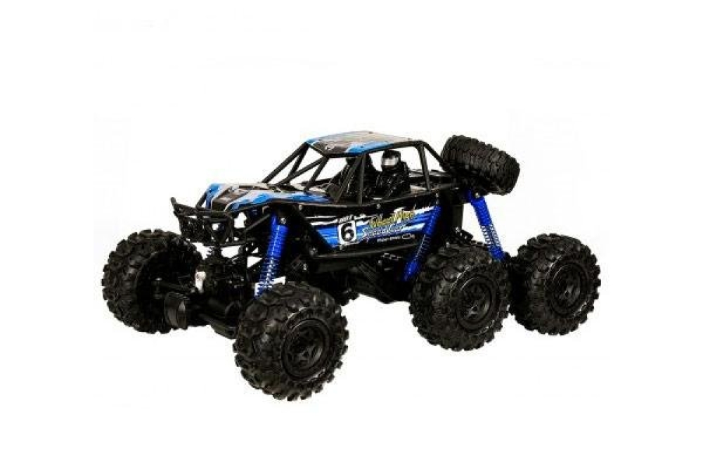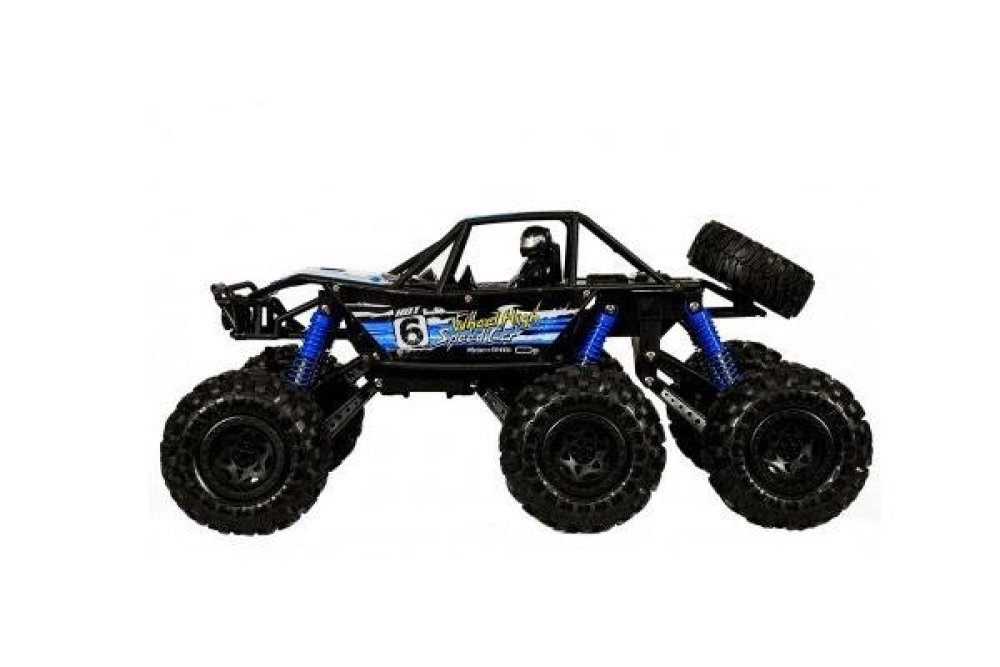 Этот проходимый краулер имеет постоянный полный привод по формуле 6WD, т.е. все шесть колес крутятся, чтобы машинка не застревала, катаясь по бездорожью. Подвеска имеет пружинные амортизаторы что отлично помогает мягко проезжать кочки и лежачих полицейских. Для того чтобы ездить в любую погоду в машинке есть влагозащита электроники. Автомобиль оснащен усиленной рамой и металлической кабиной. Поэтому опрокидывание и перевороты на скорости не нанесут существенного урона. Максимальная скорость на коллекторном двигателе составит 8 км/ч, а время работы до 20 минут. Данная модель выполнена в синем цвете, хорошо заметна в траве и грязи и обладает отличной проходимостью.