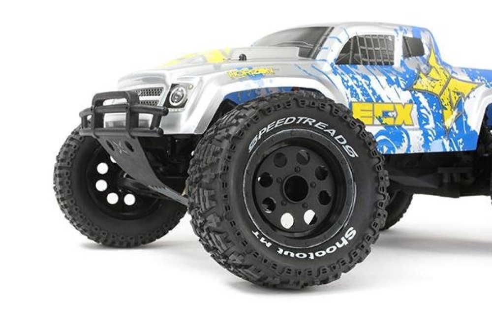 Брутальный монстр ECX Ruckus RTR 2WD 1:10 ECX03131T1 придется по душе всем любителям больших и мощных радиоуправляемых моделей. Машинка оснащена надежным шасси с деталями из прочного композитного нейлона, под ярким кузовом установлена влагозащищенная электроника – мощный коллекторный мотор Dynamite® 15T и регулятор скорости Dynamite® WP 40A с функцией заднего хода, разгоняющие монстра до 40 км/ч. Монстр поставляется в комплекте с емким аккумулятором 2S Li-Po Dynamite® 7.4V 1800 мАч 20C и специальным зарядным устройством 10W, заряжающим его всего за 2 часа. Управление осуществляется при помощи специального 2-хканального передатчика FHSS Spektrum ™ STX2 ™ и не требует специальных навыков. ECX Ruckus RTR 2WD готов покорять самые экстремальные условия сразу из коробки!