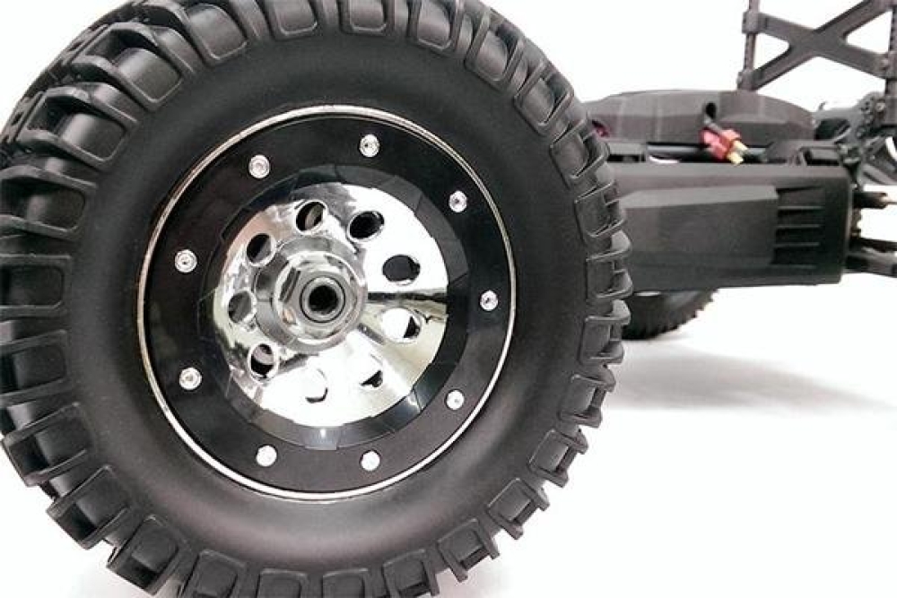 Брутальный монстр Thunder Tiger K-ROCK 1:8 4WD сразу выделяется среди аналогов и приковывает взгляд качественной проработкой деталей. Технические характеристики модели также на высоте. Полноприводный монстр с мощным бесколлекторным мотором оснащен прочным шасси, рамной конструкцией кузова со съемной внешней рамой, увеличенным отсеком для любых автомодельных батарей. Большие внедорожные шины с рельефными протекторами обеспечивают превосходное сцепление с дорогой. При этом Thunder Tiger K-ROCK 1:8 отлично подходит для прыжков, переворотов и трюков, а от заваливания назад машинку предохранит вили бар. Предусмотренная влагозащита электроники позволяет запускать машинку на любой трассе, не боясь попадания пыли и грязи. Для большей реалистичности Thunder Tiger K-ROCK 1:8 4WD дополнен звуковым эффектом работающего двигателя, также есть возможность установки светодиодной подсветки в прожекторы. В комплект входит крепление для GoPro-камеры, позволяющее снимать драйвовые заезды «от первого лица».