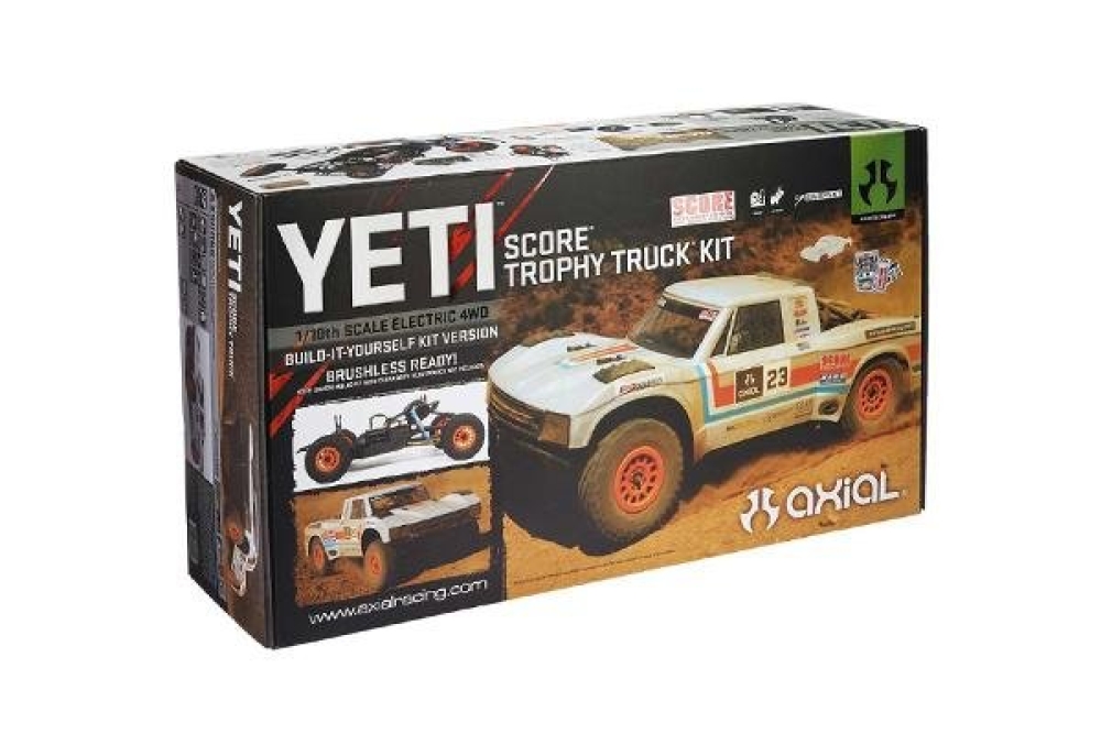 AXIAL Yeti Trophy Truck 4WD KIT 1:10 – соберите настоящую модель шорт-корса в масштабе 1:10 своими руками! В набор входит шасси с реалистичным проработанным кузовом, большие колеса с дисками 2.2/3.0 Method 105 Replica и внедорожной резиной 2.2/3.0 BFGoodrich Baja T/A KR2. Вам необходимо докупить и установить на шасси бесколлекторный мотор, электронику и аккумулятор.
