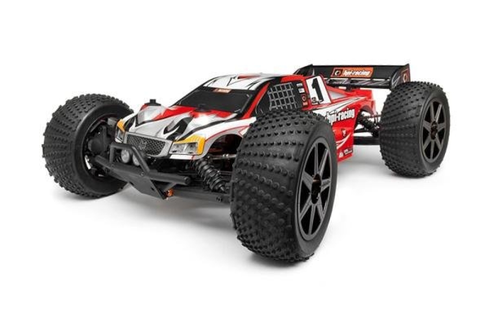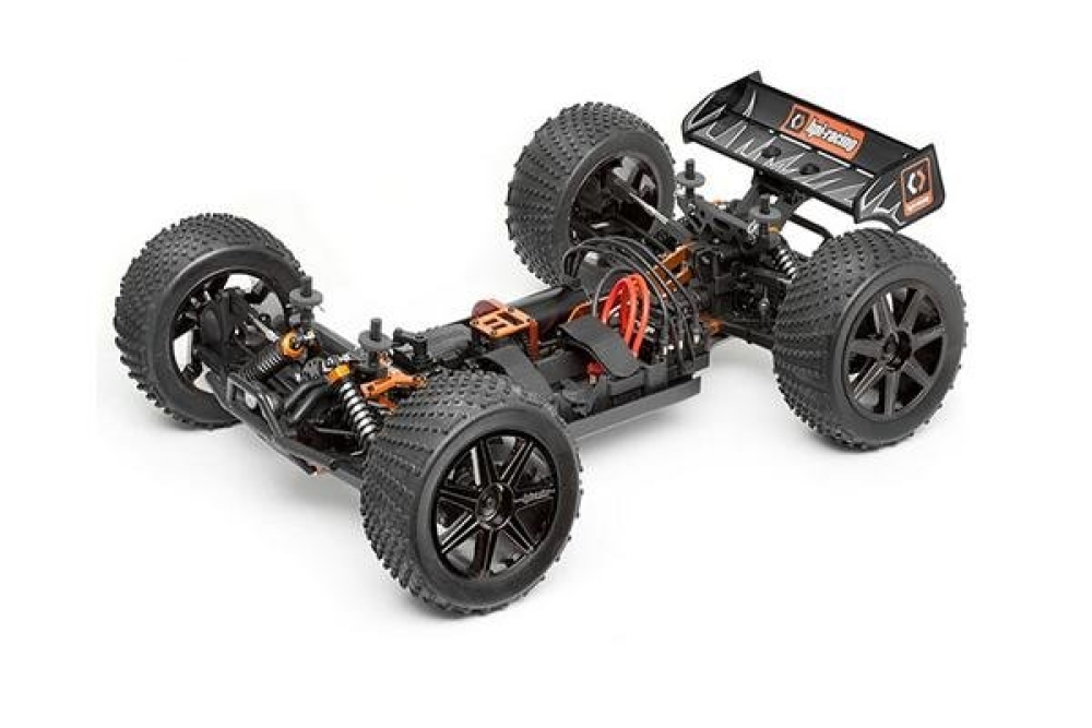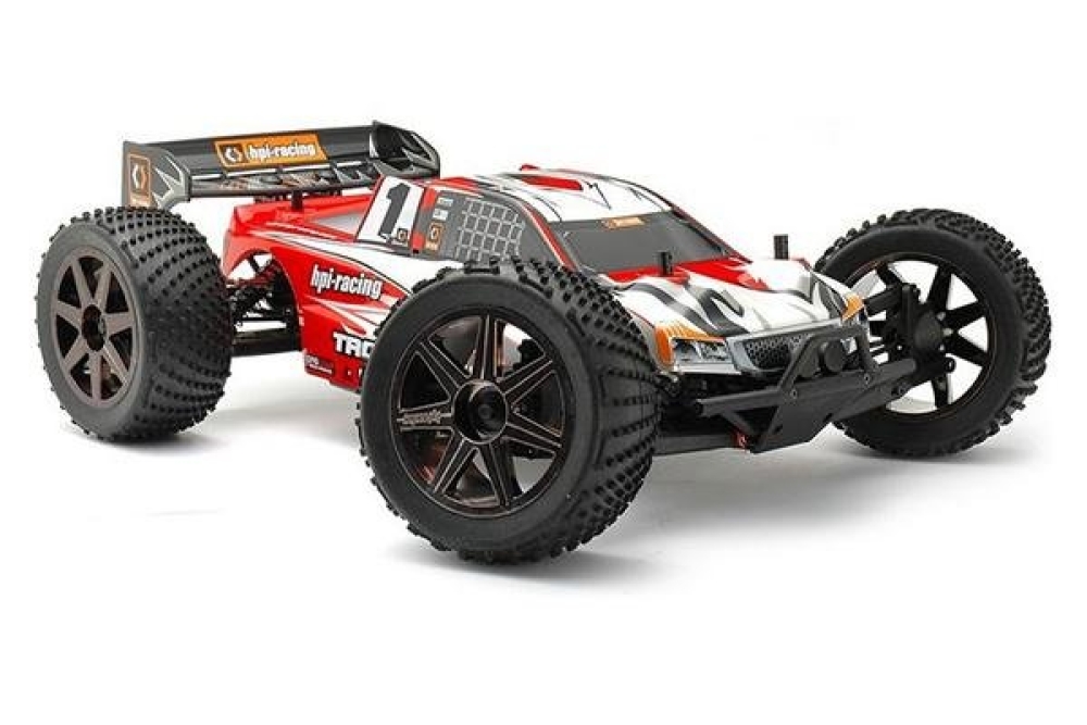 HPI Trophy Truggy Flux 4WD RTR 1:8 – мощный трагги с полным приводом и универсальной бесколлекторной системой HPI Flux. Машинка готова к сумасшедшим гонкам прямо из коробки, необходимо лишь установить 2 Li-Po аккумулятора. Модель отличает высокая скорость и возможность выполнения трюков, обеспечиваемая , в том числе, повышенной прочностью корпуса и бамперов. Под ярким детализированным кузовом скрываются металлические регулируемые детали, регулятор скорости с возможностью программирования, передний и задний стабилизаторы поперечной устойчивости. За отличную устойчивость на трассе и проходимость отвечают регулируемые маслонаполненные амортизаторы, мощные шины с рельефными протекторами. Управление не вызовет затруднений и позволит даже малоопытному пилоту почувствовать себя настоящим гонщиком.