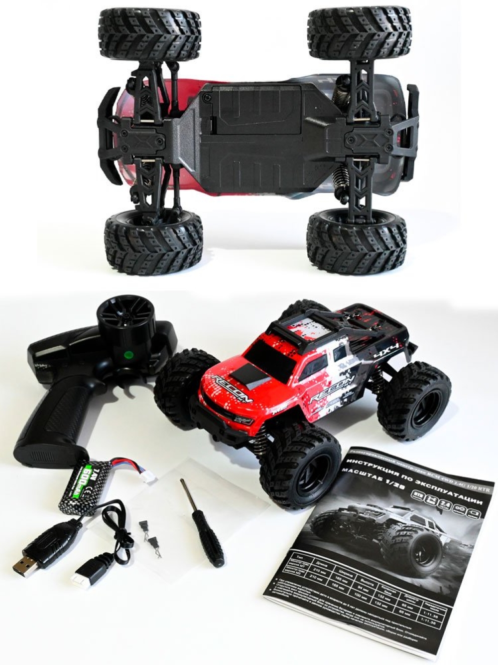 Радиоуправляемый монстр RCM Recon MT (красный) 4WD 2.4G 1/20 RTR - RCM-RECON-RED