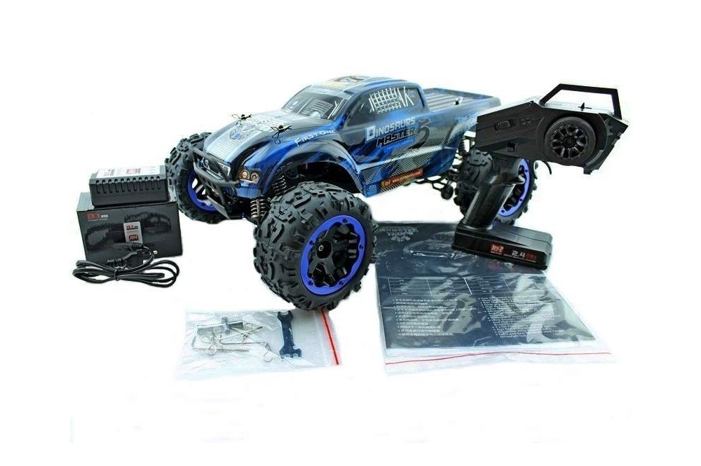 Радиоуправляемая модель Монстр-трак Remo Hobby Dinosaurs Master имеет полный привод, хорошую управляемость и ДВА коллекторных электродвигателя серии 550. Модель выполнена в масштабе 1:8 с большим вниманием к мельчайшим деталям. Модель оснащена сервомашинкой усилием 9кг, а также пультом управления с частотой 2.4GHz. Колёса выполнены из резины, что повышает сцепление и гарантирует износостойкость и устойчивость даже на самых неожиданных участках трассы.