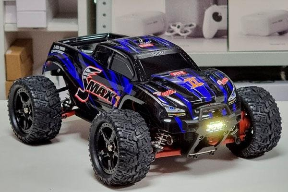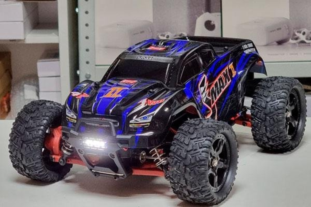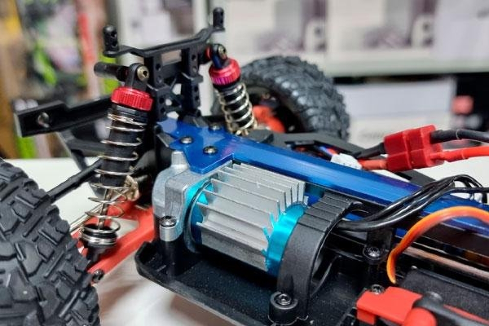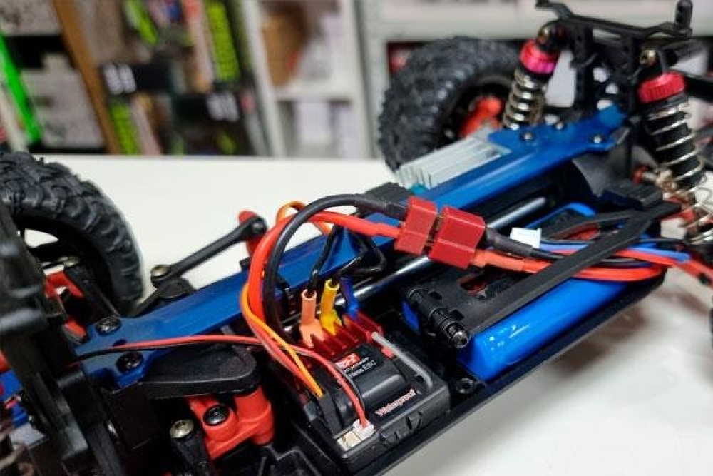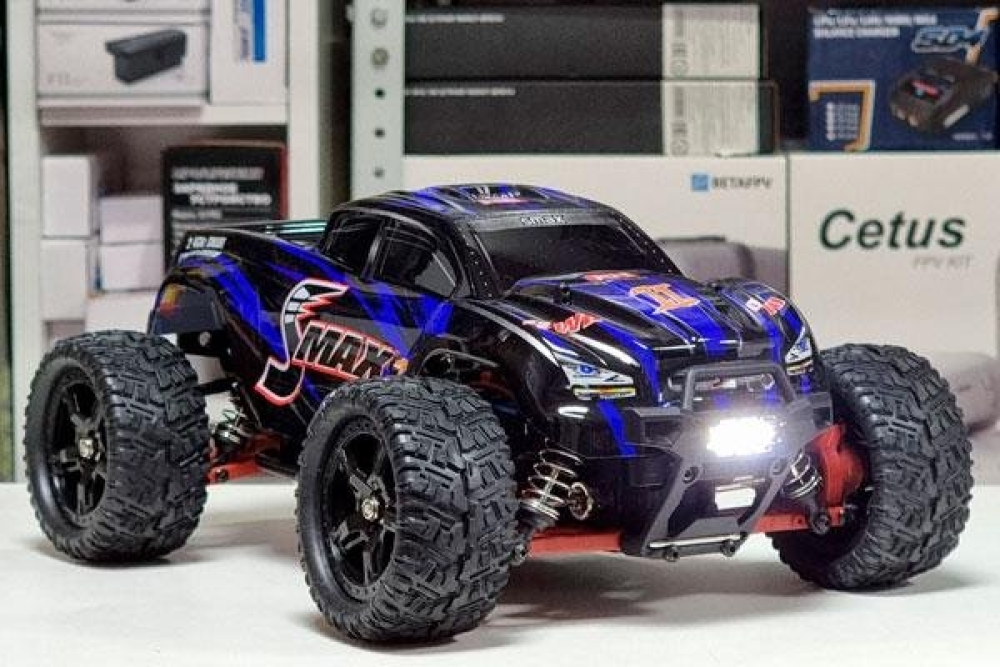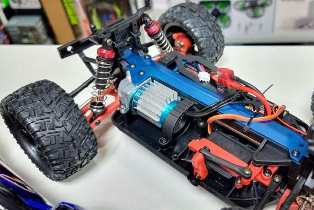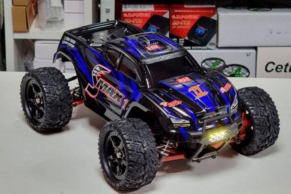 Электроника: влагозащищенный регулятор оборотов управляет сервомашинкой и электромотором. Бесколлекторный мотор развивает скорость до 60 км/ч. Полностью пропорциональное управление серво и подачей газа.