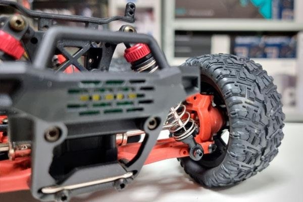 Подвеска: состоит из усиленных нижних и стандартных верхних рычагов, чашки приводов колес, как и сами приводы - металлические. Маслонаполненные амортизаторы на пружинах, крепятся к амортизационным стойкам. Спереди также находятся поворотные кулаки и держатели, а сзади ступицы. Полный привод 4WD осуществляется за счет металлических дифференциалов и карданного вала.