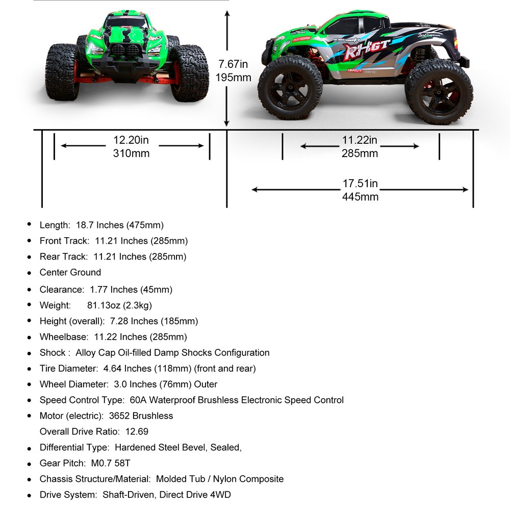 Радиоуправляемая машина Monster-Truck от Remo Hobby модель RH1036 GT в масштабе 1:10, с бесколлекторным электродвигателем, полном приводом 4WD и высокой проходимостью. Влагозащита электроники, аккумулятор Li-Po 5000 mah 7.4 V, полное пропорциональное управление.