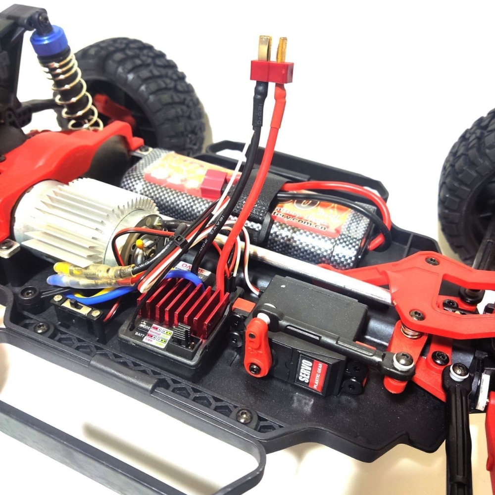 Это проверенная временем надежная конструкция производится с использованием улучшенного пластика - тюнингованых деталей, выделяющихся красным цветом. Полный привод повышает проходимость и управляемость модели.