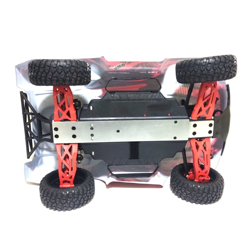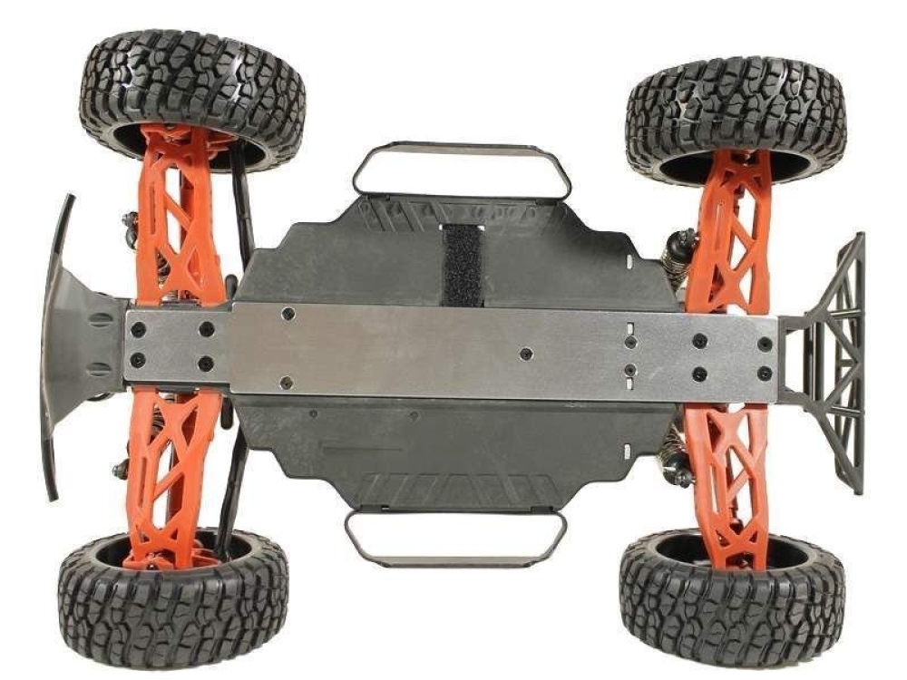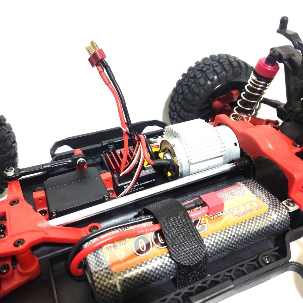 Это проверенная временем надежная конструкция производится с использованием улучшенного пластика - тюнингованых деталей, выделяющихся красным цветом. Полный привод повышает проходимость и управляемость модели.