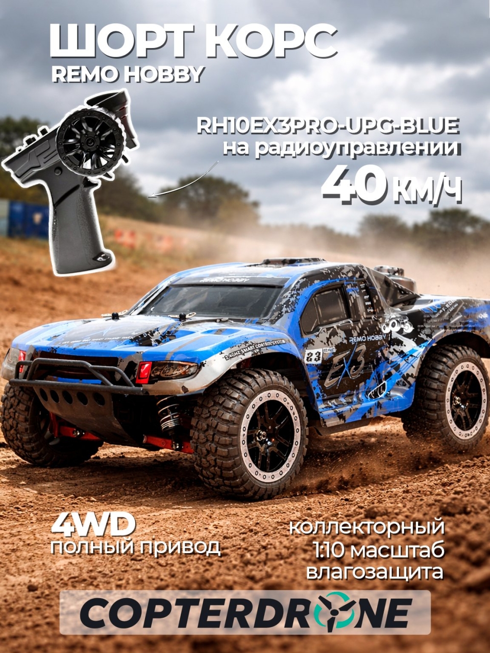 Радиоуправляемая машина шорт-корс Remo Hobby EX3 UPGRADE (синий) 4WD 2.4G 1/10 RTR - RH10EX3PRO-UPG-BLUE