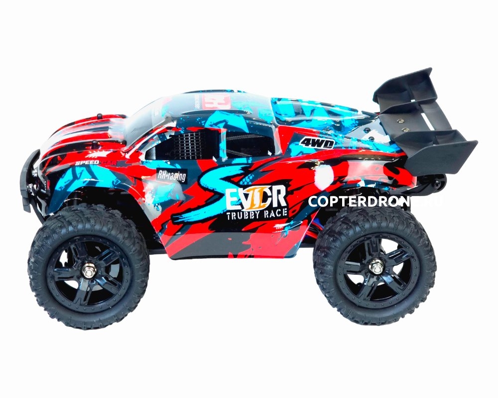 Модель трагги, построенная на платформе Smax. Из основных отличий - новые колеса, стильный кузов "трагги", задний виллибар, съемное антикрыло, а также бамперы. Подвеска, мотор, электроника, а также аппаратура управления остались без изменений. Металлически приводы и дифференциалы выдержат большой крутящий момент и прослужат в разы дольше, чем пластиковые. Полный привод 4*4 обеспечит отличную проходимость по полному бездорожью, а за счет влагозащищенной электроники можно кататься по лужам и грязи.