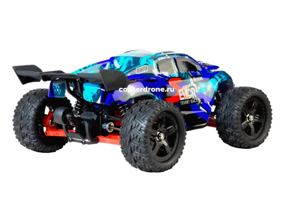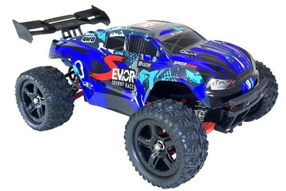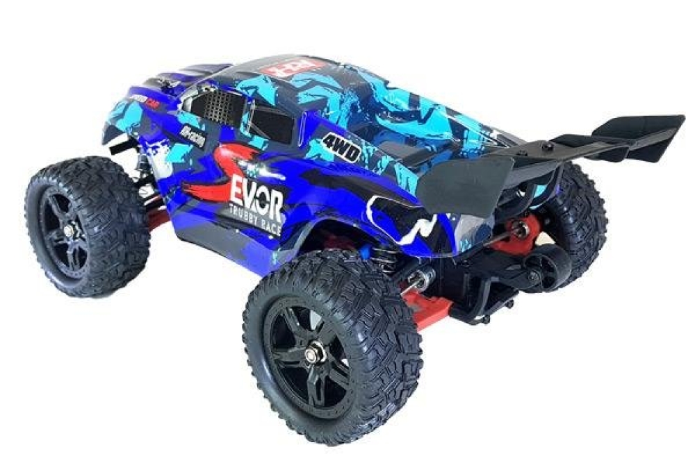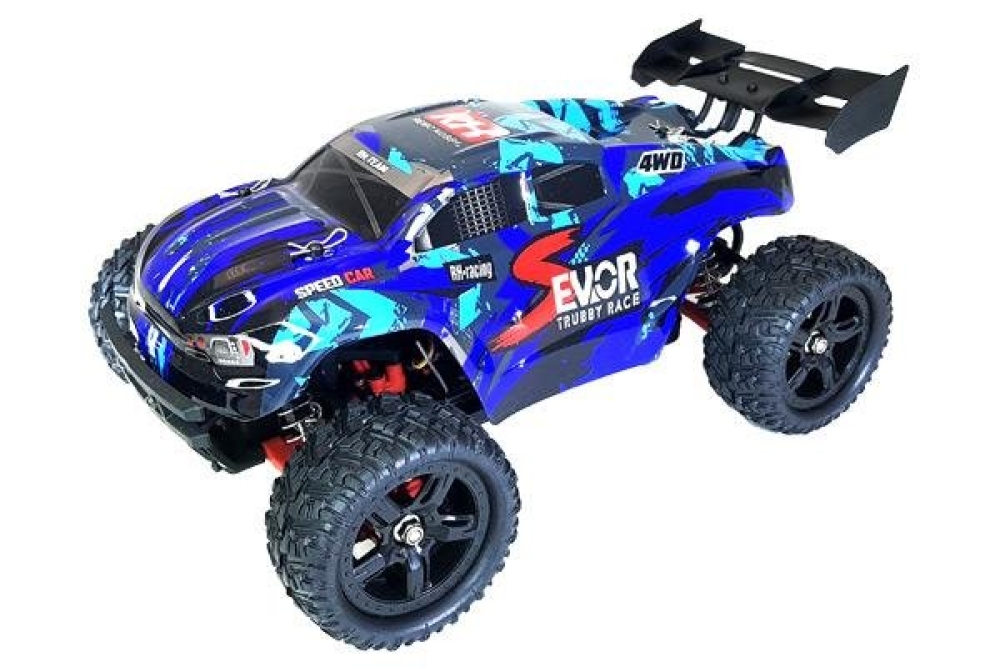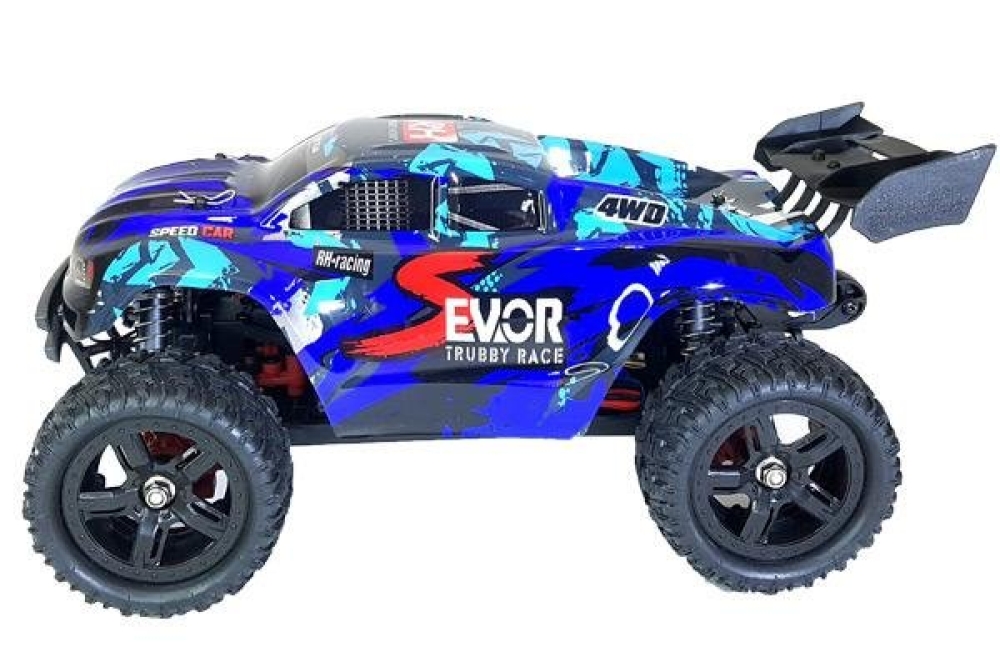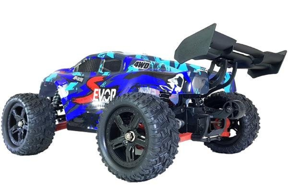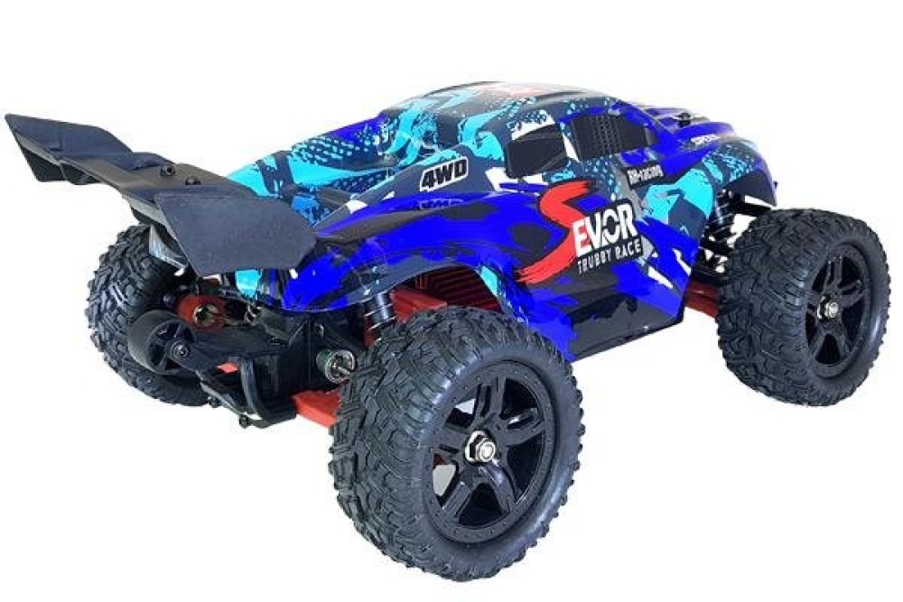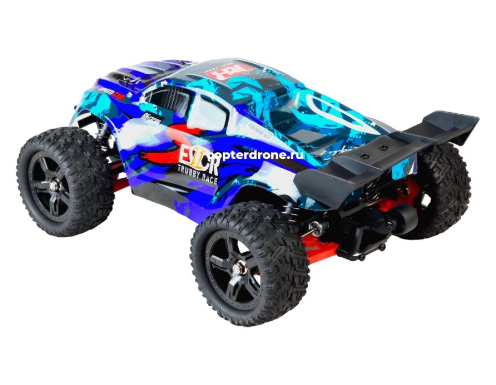 Трагги S EVO-R 1:16 масштаба стала такой же популярной как и S MAX монстр. Она имеет ту же конструкцию, отличие лишь в корпусе, а также дополнительной задней поддержке от опрокидываний на высоких скоростях. Новая версия модели имеет множество усиленных тюнингованных деталей, а это значит что она теперь максимально готова к высоким скоростям и сопутствующим ударам. Улучшения коснулись передней и задней подвески (нижние рычаги и кулаки), переработаны амортизаторы, установлена усиленная металлическая пластина в верхней части рамы. Время работы составляет до 30 минут, а дальность действия 2.4ghz приёмника 150 метров. В базовой версии установлен более ёмкий аккумулятор на 1500 mah, а также brushed (коллекторный) мотор 390 класса. Комплект готов к эксплуатации, дополнительно требуется только 4 батарейки АА в пульт управления.