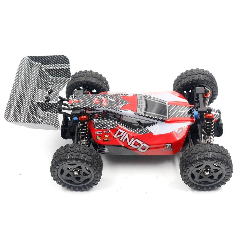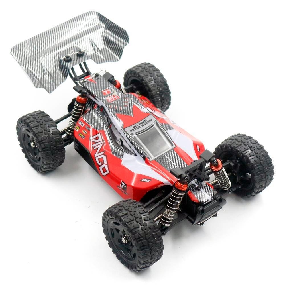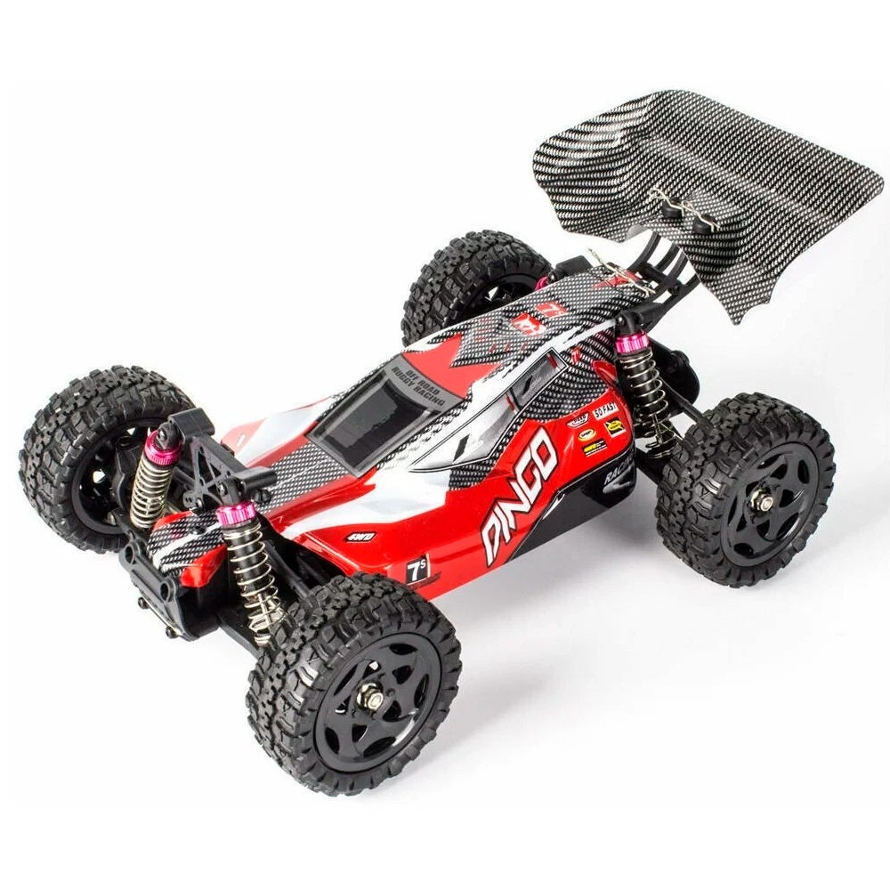 Remo Hobby Buggy Dingo Brushed 1:16 RH1651 - яркий радиоуправляемый малогабаритный внедорожник, приводимый в движение коллекторным двигателем. Машинка подходит для запуска как в помещении, так и на открытом воздухе в любых погодных условиях благодаря влагозащите электроники. Полноприводный Buggy с масляными амортизаторами прекрасно справится с бездорожьем и разовьет скорость до 35 км/ч. Полного заряда аккумулятора ему хватит на 25 минут захватывающих гонок. Управлять машинкой просто и удобно при помощи специального пульта, действующего в радиусе 120 м - этого расстояния достаточно даже для заездов на специализированных треках. Модульная система позволяет при необходимости заменять все детали модели.