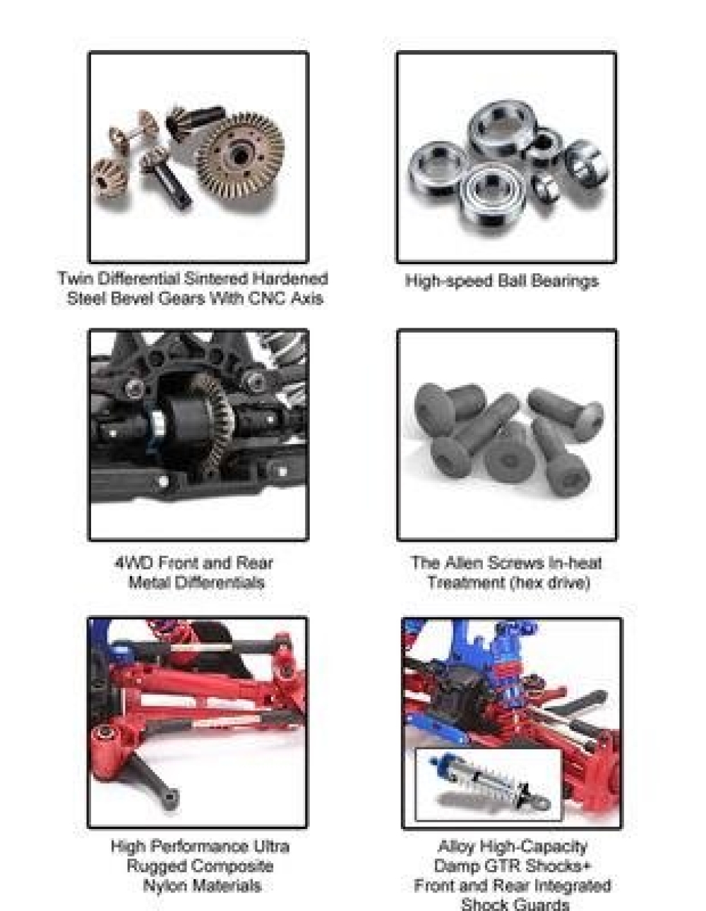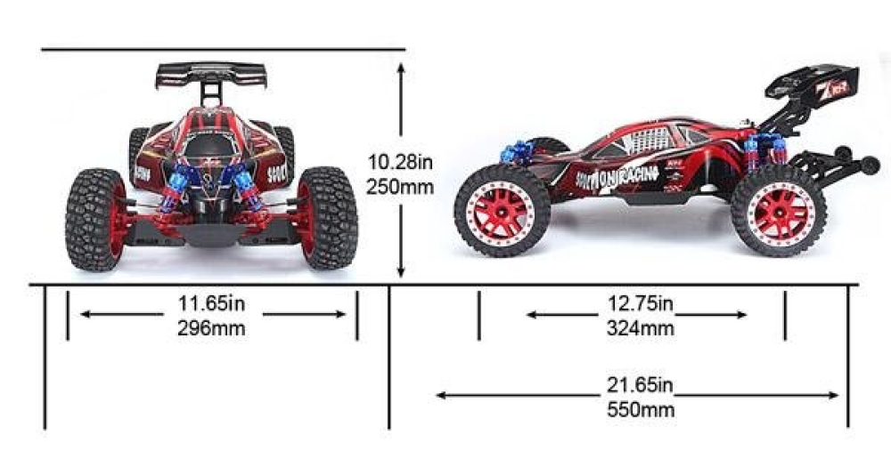 Багги на пульте управления большого размера порадует вас своей высокой скоростью и проходимостью. Универсальное шасси выполнено из качественных материалов, и хорошо сбалансировано. Имеет металлический кардан и шестерни трансмиссии. Подвеска многорычажная и независимая, задняя колея имеет двойные амортизаторы. Все рычаги и приводы колес выполнены из усиленного нейлонового пластика. Передние рычаги дополнительно оснащены защитными пластинами, которые дополнительно оберегают подвеску при сильных ударах. Передние колеса можно настраивать (развал-схождение). Также шасси имеет боковые амортизаторы, поэтому машинку можно пустить в занос, не боясь поломки при боковом ударе.