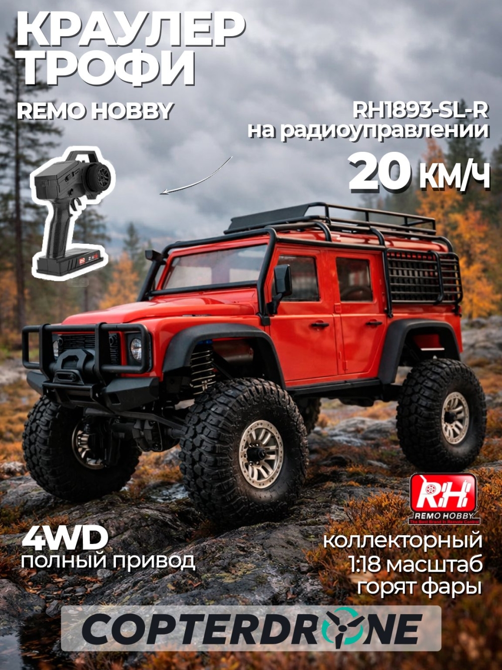 Радиоуправляемый краулер Remo Hobby OFF-ROAD (красный) 4WD 2.4G 1/18 RTR - RH1893-SL-R