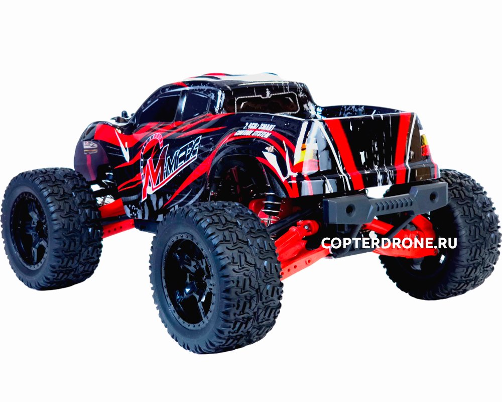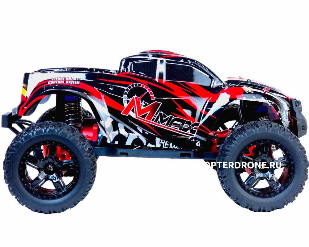 Радиоуправляемый Монстр Remo Hobby Mmax с тюнингованный деталями позволит насладиться максимальной скоростью по полному бездорожью. Усиленные рычаги подвески, ступицы и другие детали шасси позволят прыгать с трамплинов на высокой скорости. Обслуживание автомобиля станет гораздо дешевле так как не придётся постоянно ремонтировать подвеску. В остальном это всё тот же, хорошо знакомый монстр на радиоуправлении с влагозащитой электроники, постоянным полным приводом, масляными амортизаторами, и металлическими элементами подвески и дифференциалов. Мягкие резиновые колёса с протектором отлично ездят по любой поверхности от асфальта до гравия и грязи. Аккумулятор ёмкостью 2500 mah часов позволит ездить до 25 минут без остановки на одном заряде, а радиус действия составляет 150 м. Мотор установлен коллекторный 550 класса - надежный и мощный.