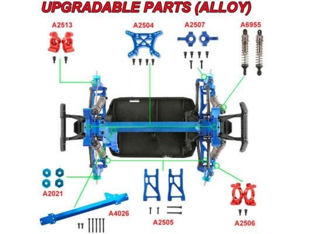 Благодаря влагозащите электроники юркий полноприводный внедорожник можно запускать в любую погоду и на любом покрытии, устраивая самые безбашенные заезды. В комплект входит пульт с двухсторонним колесом руля, подходящий как для правшей, так и для левшей. Радиус его действия составляет 150 м. Машинка имеет относительно прочный корпус с ярким дизайном и оборудована стандартным коллекторным мотором, который прост в обслуживании. Запчасти и тюнинг очень распространены для этой машинки, все детали взаимозаменяемые и сделать это можно самостоятельно, а тюнинговые детальки стоят недорого и изготовлены из алюминия или нержавеющей стали.