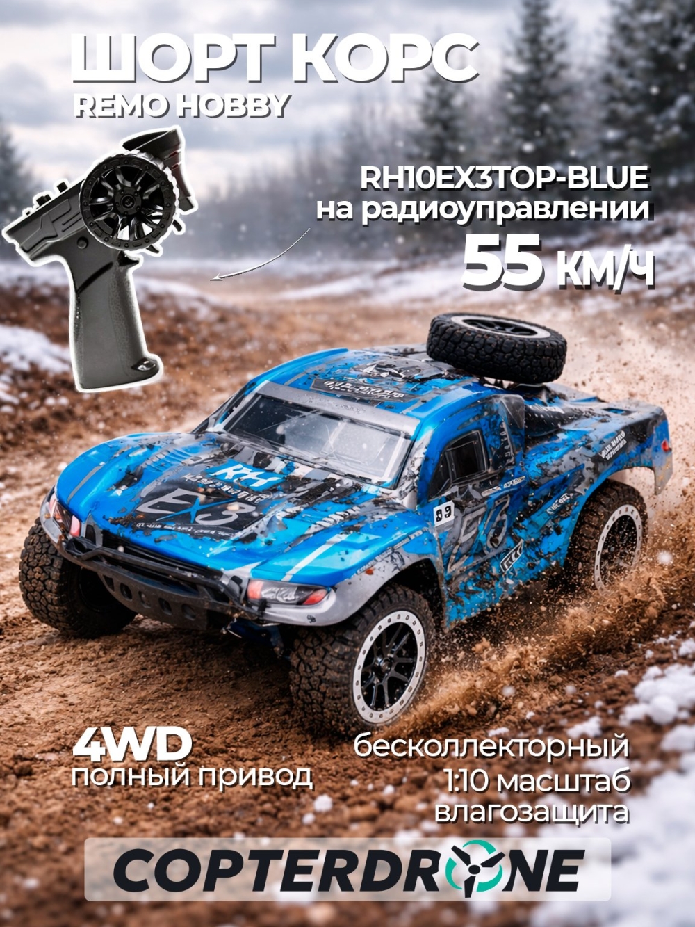 Радиоуправляемый шорт-корс Remo Hobby 10EX3 4WD RTR масштаб 1:10 2.4G - RH10EX3TOP-BLUE