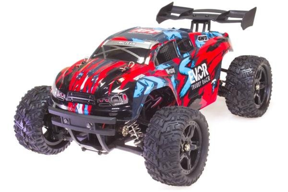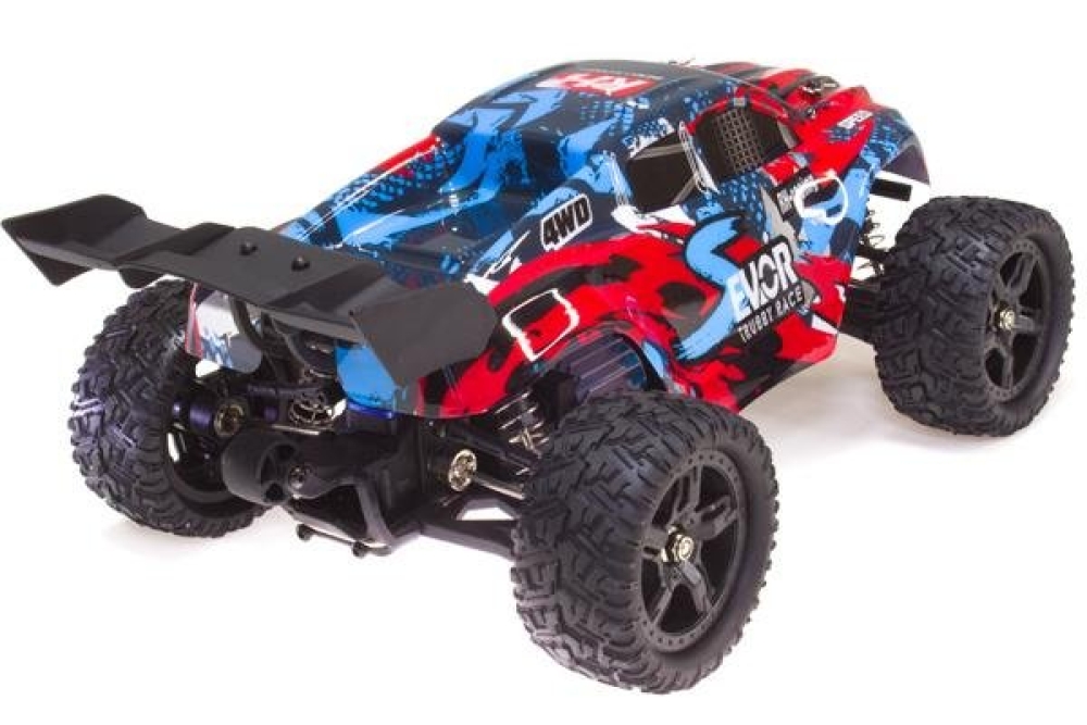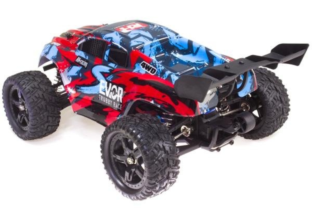 Бесколлекторная версия Remo Hobby S EVO-R в масштабе 1:16. Это, наверное, самое лучшее сочетание мощности и прочности. Все в машинке максимально настроено под мощь, выдаваемую б/к двигателем - приводы колес, амортизаторы, шестерни дифференциалов, кулаки - все это выполнено из прочнейшей стали. Так что вы сможете ездить по внедорожью на максимальной скорости и наслаждаться тем, как отрабатывает многорычажная подвеска. Стоит отметить влагозащиту электроники, а именно приемника с регулятором оборотов, которая позволит преодолевать лужи, грязь и снег. Постоянный полный привод и глубокий рисунок протектора делают траггу максимально проходимой. Скорость, развиваемая машинкой составляет до 50 км/ч, что является лучшим показателем в классе. Цена на машинку вас приятно удивит, также как и обслуживание, большое количество запчастей всегда в наличии, а заменить их не составит труда в том числе и самостоятельно.