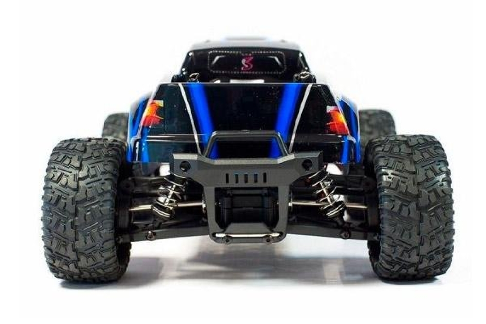 Благодаря влагозащите электроники юркий полноприводный внедорожник можно запускать в любую погоду и на любом покрытии, устраивая самые безбашенные заезды. В комплект входит пульт с двухсторонним колесом руля, подходящий как для правшей, так и для левшей. Радиус его действия составляет 150 м. Машинка имеет относительно прочный корпус с ярким дизайном и оборудована стандартным коллекторным мотором, который прост в обслуживании. Запчасти и тюнинг очень распространены для этой машинки, все детали взаимозаменяемые и сделать это можно самостоятельно, а тюнинговые детальки стоят недорого и изготовлены из алюминия или нержавеющей стали.