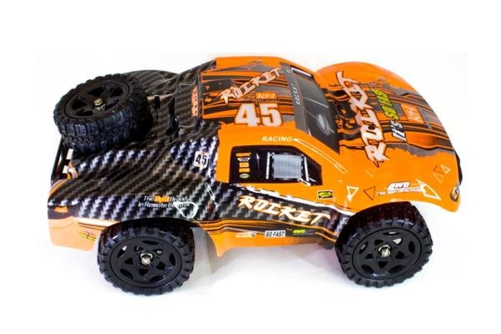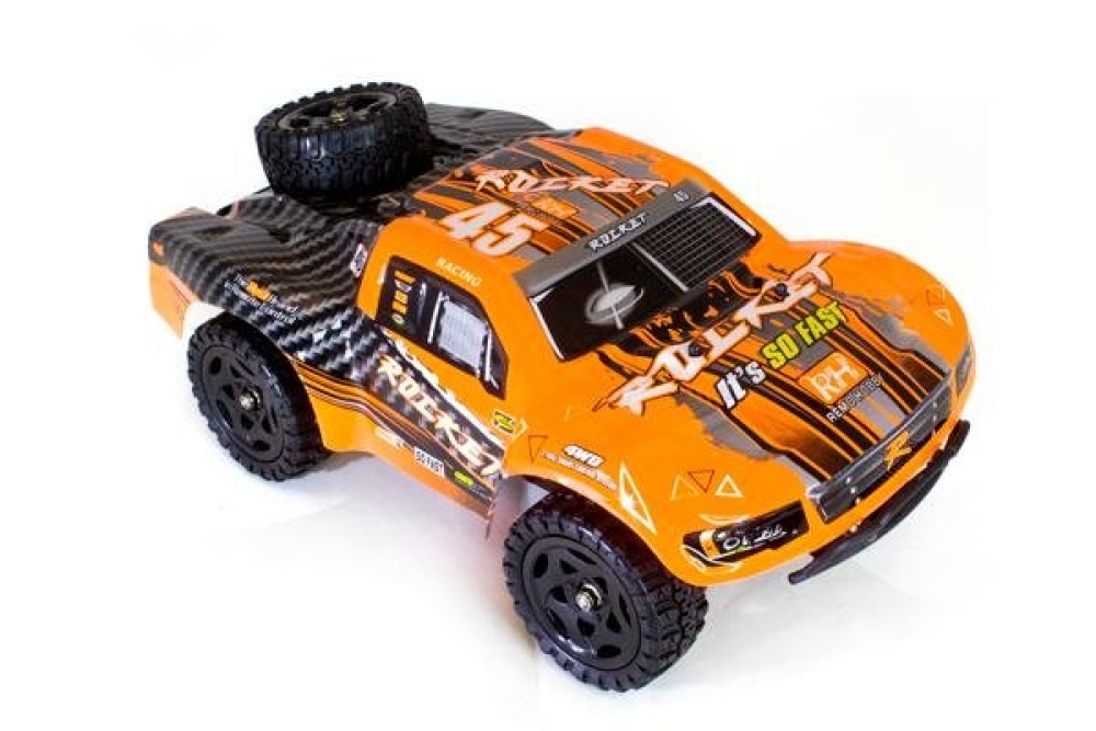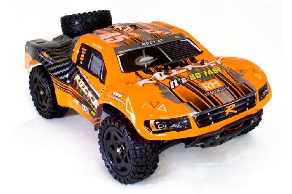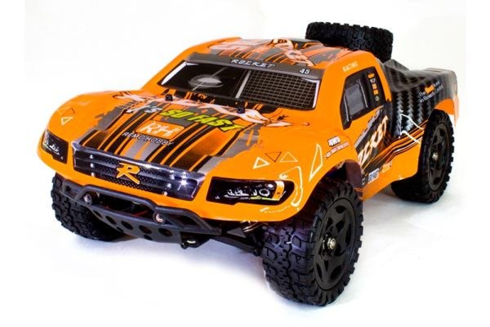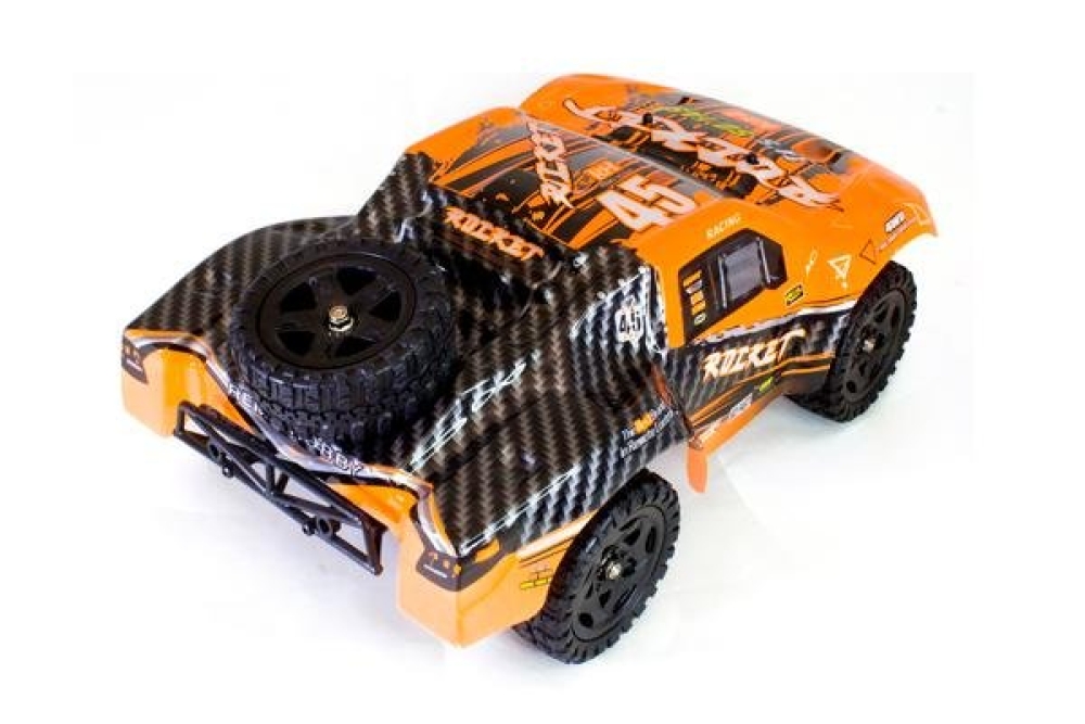 Радиоуправляемый Remo Hobby Rocket Short-Course Truck - яркий полноприводный шорткорс с коллекторным электродвигателем 390 класса, изготовленный в масштабе 1:16. Данная модель спроектирована на основе модульного шасси, что позволяет сочетать отличные ходовые характеристики и простоту обслуживания. Машинка оснащена влагозащитой электроники, благодаря чему Вы можете запускать ее не только в помещениях и по сухим поверхностям, но и по мокрой траве или асфальту на открытом воздухе. Модель имеет неплохие скоростные характеристики и приличную проходимость. Максимальная скорость шорта - 35 км/час. Сгладить неровности трассы помогут масляные амортизаторы. Полного заряда аккумулятора хватит на 30 минут увлекательных гонок. Управление осуществляется при помощи пульта ДУ, действующего на расстоянии 120 м. Remo Hobby Rocket Short-Course Truck поставляется в собранном виде и сразу готов к заездам.