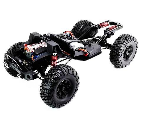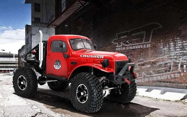 Краулер в масштабе 1:10. Влаго- и грязезащищен, жесткая металлическая рама, серво с защитой от попадания воды и песка. Скорость до 30 км/ч. Подходит для эксплуатации в сложных условиях. Кузов красного цвета.
