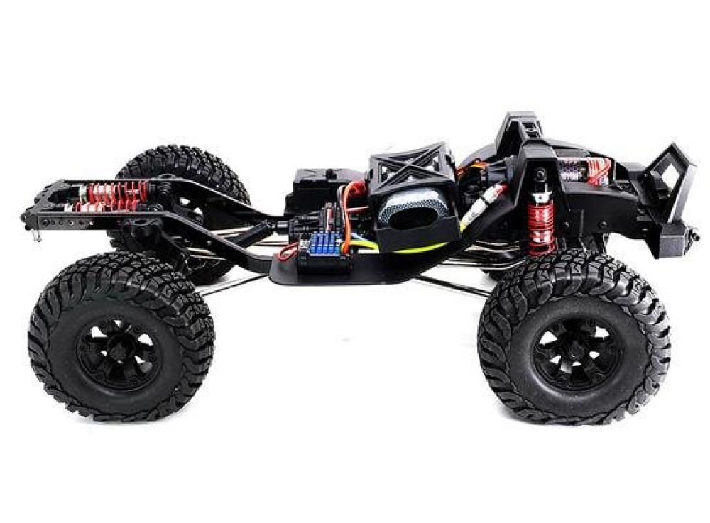 Радиоуправление помехозащищенное 2.4 ГГц, подвеска энергоемкая многорычажная. Мотор коллекторный, профессиональный - 17T RC550. Рама жесткая, сделана из металлического сплава, тяги из анодированного алюминия, кардан и крестовины из нейлонового композита. Постоянный полный карданный привод 4WD с дифференциалами из металла.