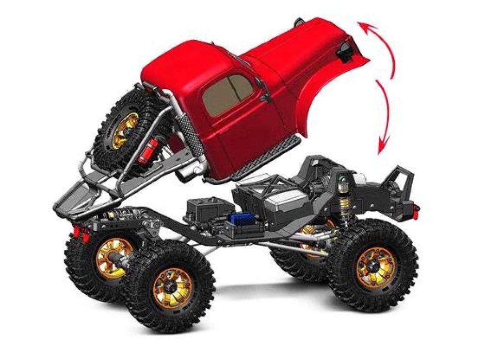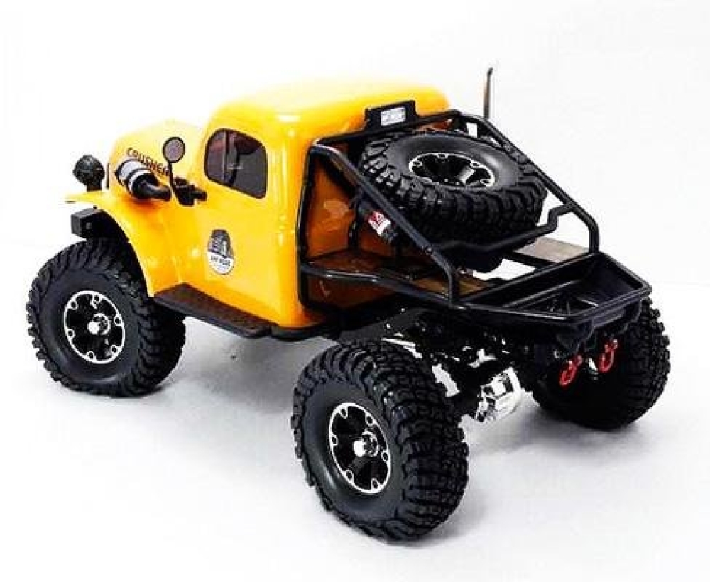 Электронный регулятор скорости с влагозащитой, сервопривод рулевого управления с защитой от воды и песка, трансмиссия защищена от попадания песка и камней. Вездеходные колеса с противоскользящим покрытием позволяют внедорожнику подниматься по склонам и преодолевать каменистые поверхности. Управление - пропорциональное. Корпус желтого цвета, с декалями - в комплекте идут декоративные наклейки. Модель выпускается в трёх цветах - красном, жёлтом и зелёном.